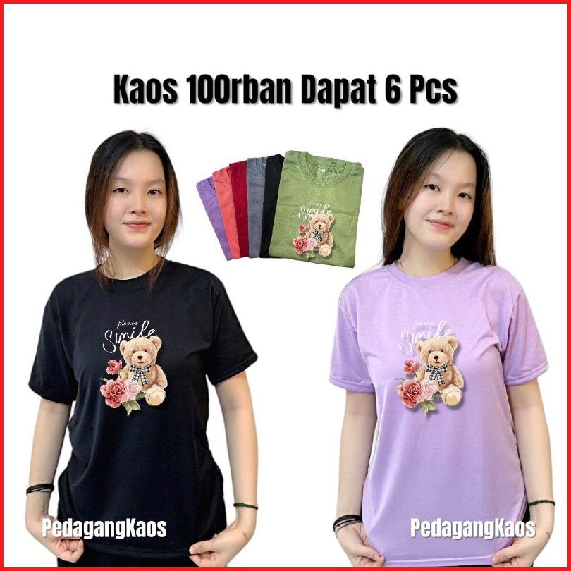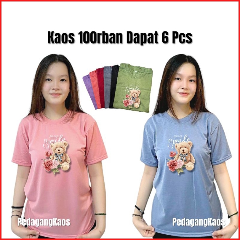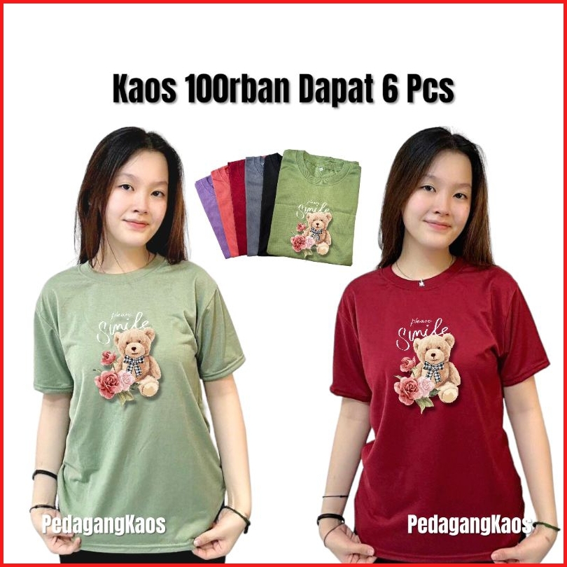 100rban Dapat 6 Pcs Kaos Wanita Motif Please Smile Lengan Pendek Bahan Babyterry Slim-fitting Cocok Untuk Santai