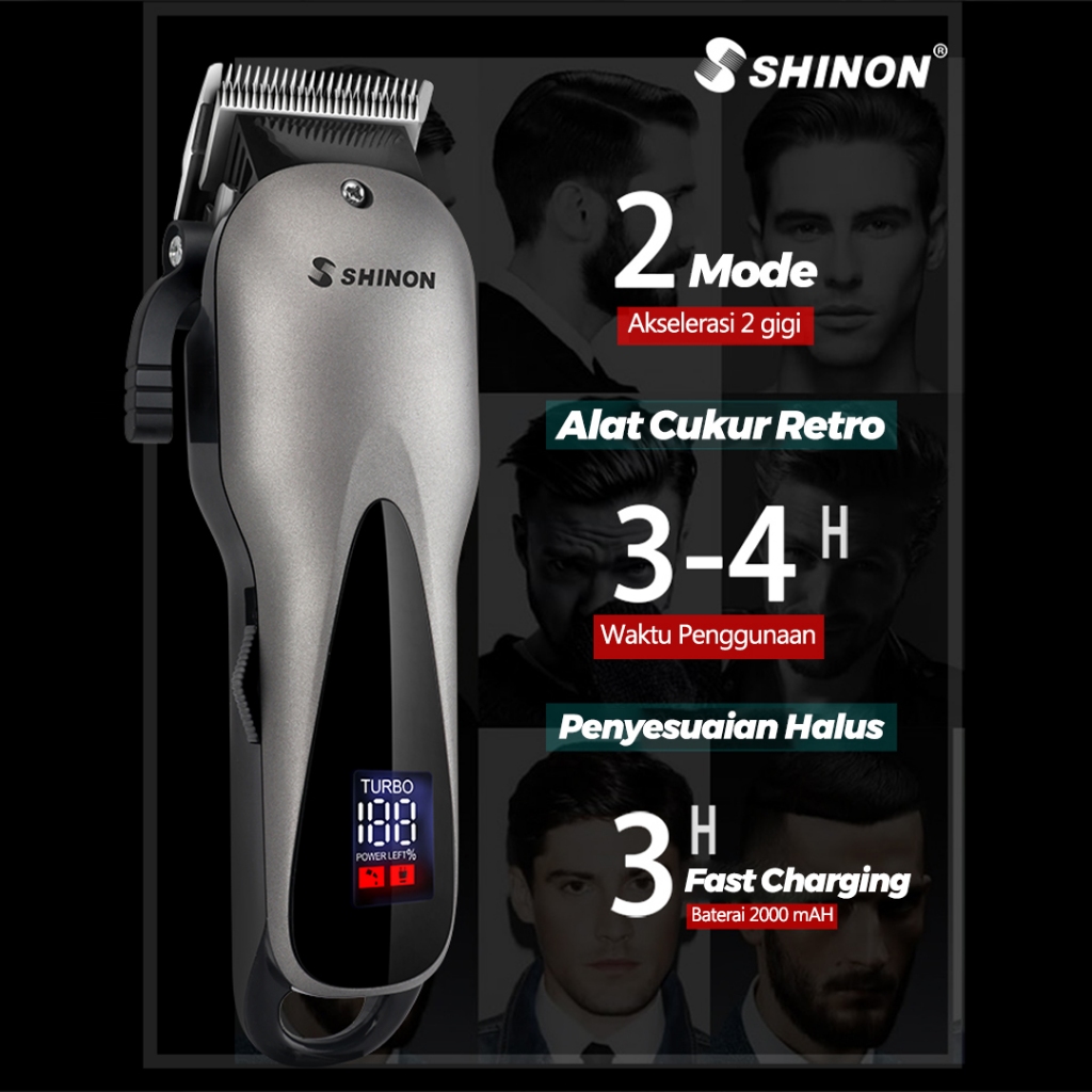 SHINON SH-2282USB Bergas Rambut Mesin Pangkas Rambut Profesional Pria Alat Cukur Rambut ElektrikPria Mesin Potong Rambut