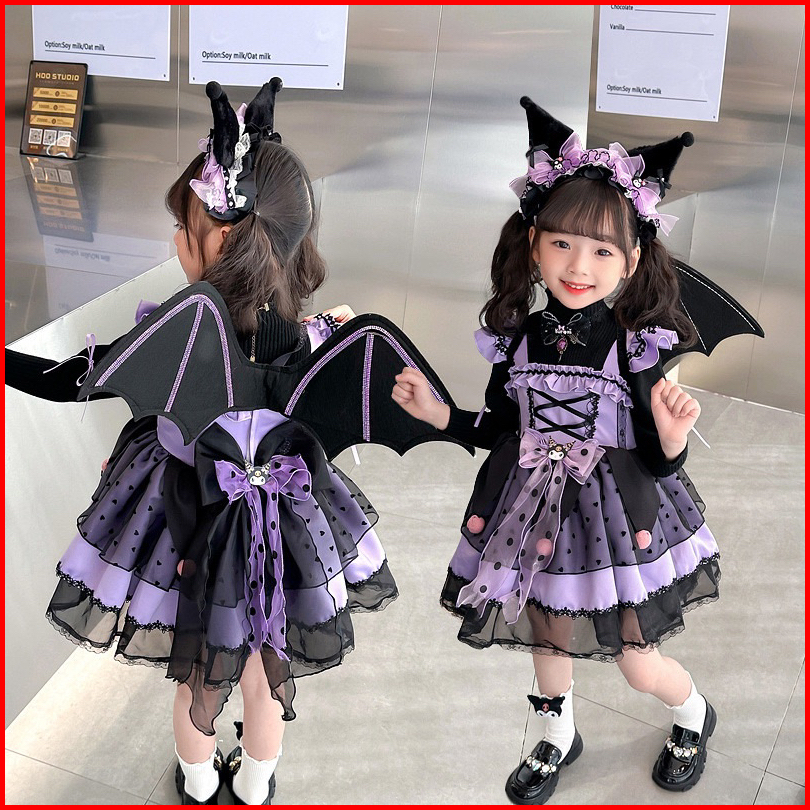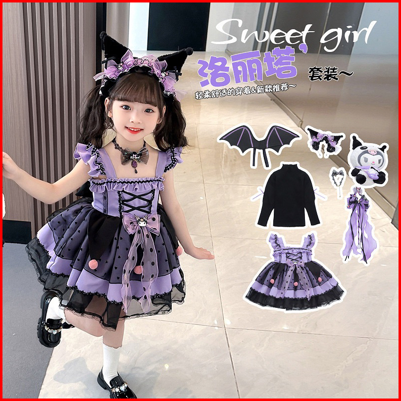 Ready Kuromi Bat Wing Dress Cosplay Sanrio Kids Birthday Dress