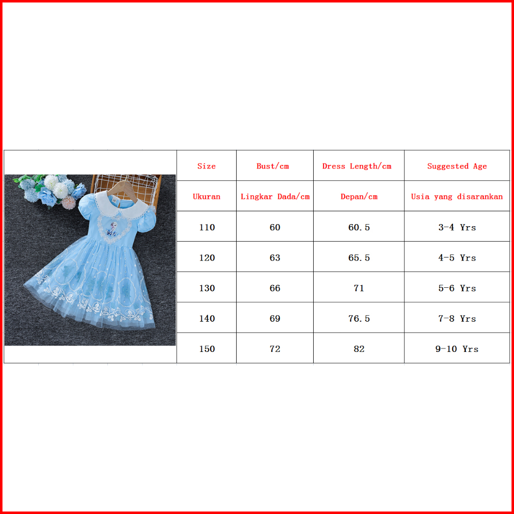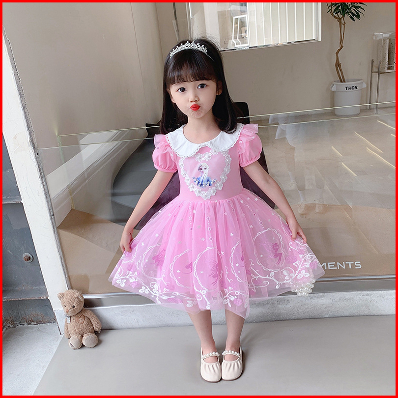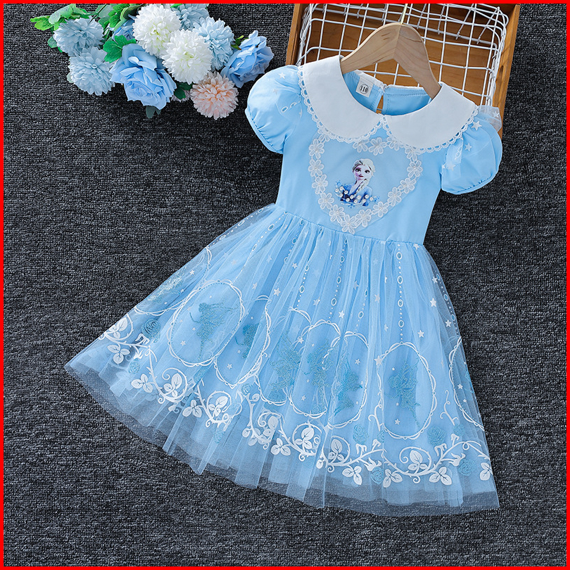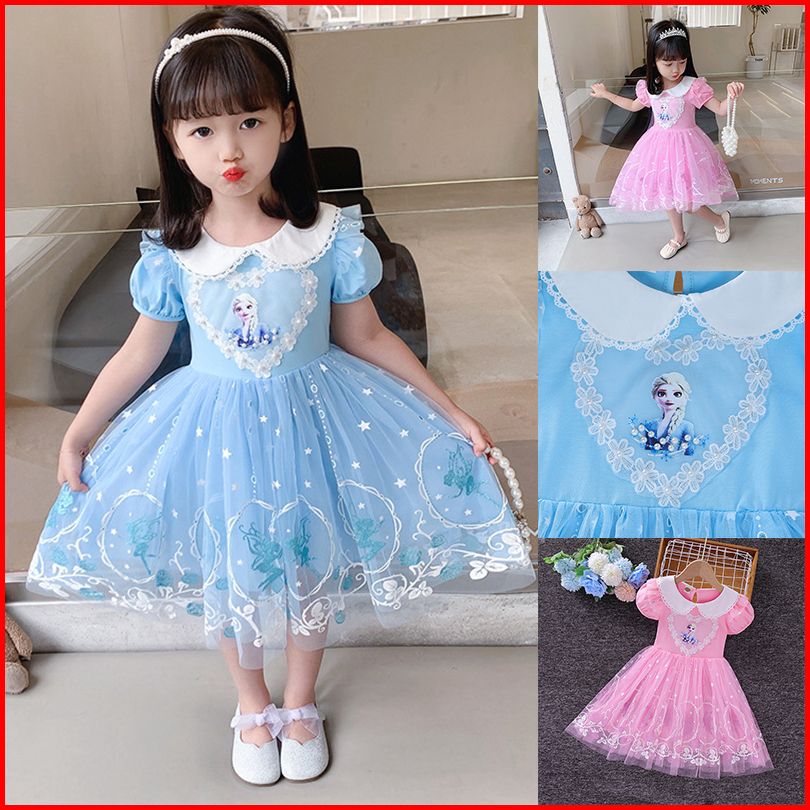 3-10 Thn Summer Girls Frozen Elsa Putri Dress Anak Tutu Dress Bunga Kasual Elegan Dress Frozen Anak