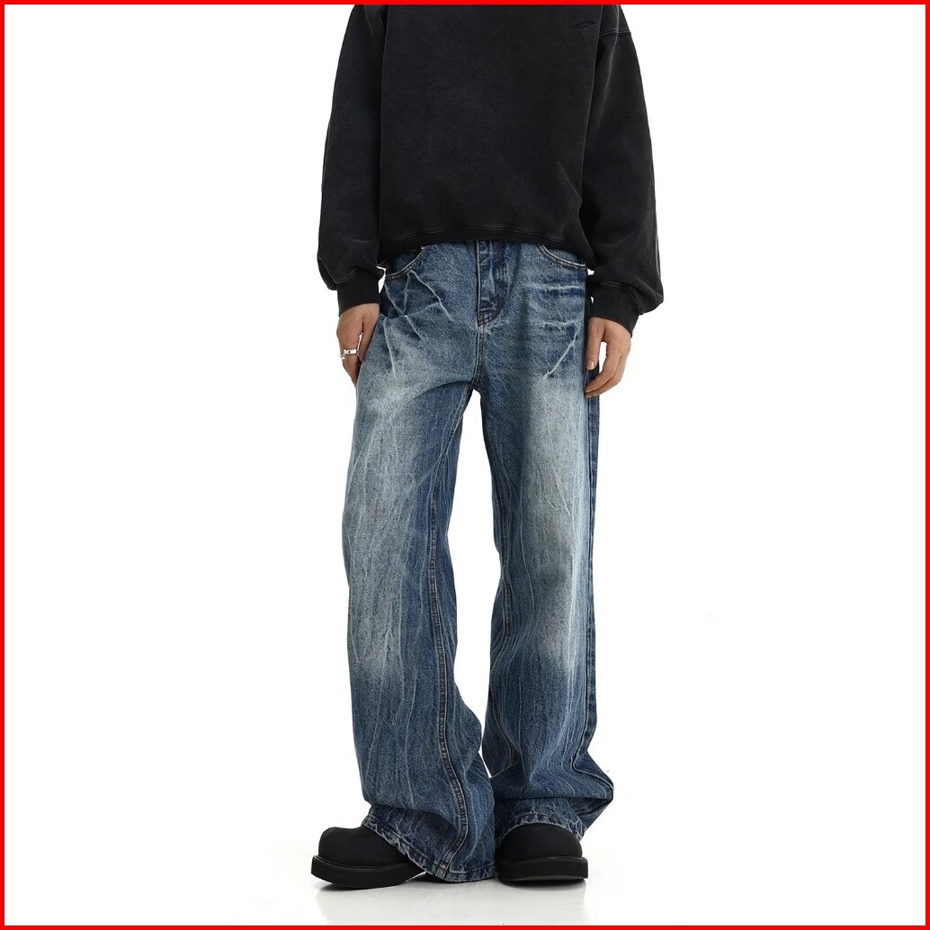 Celana Jeans Pria Baggy Pants Korean Style Oversize Straight Loose Terbaru Dewasa Cowok Casual Denim Pants Korean Style