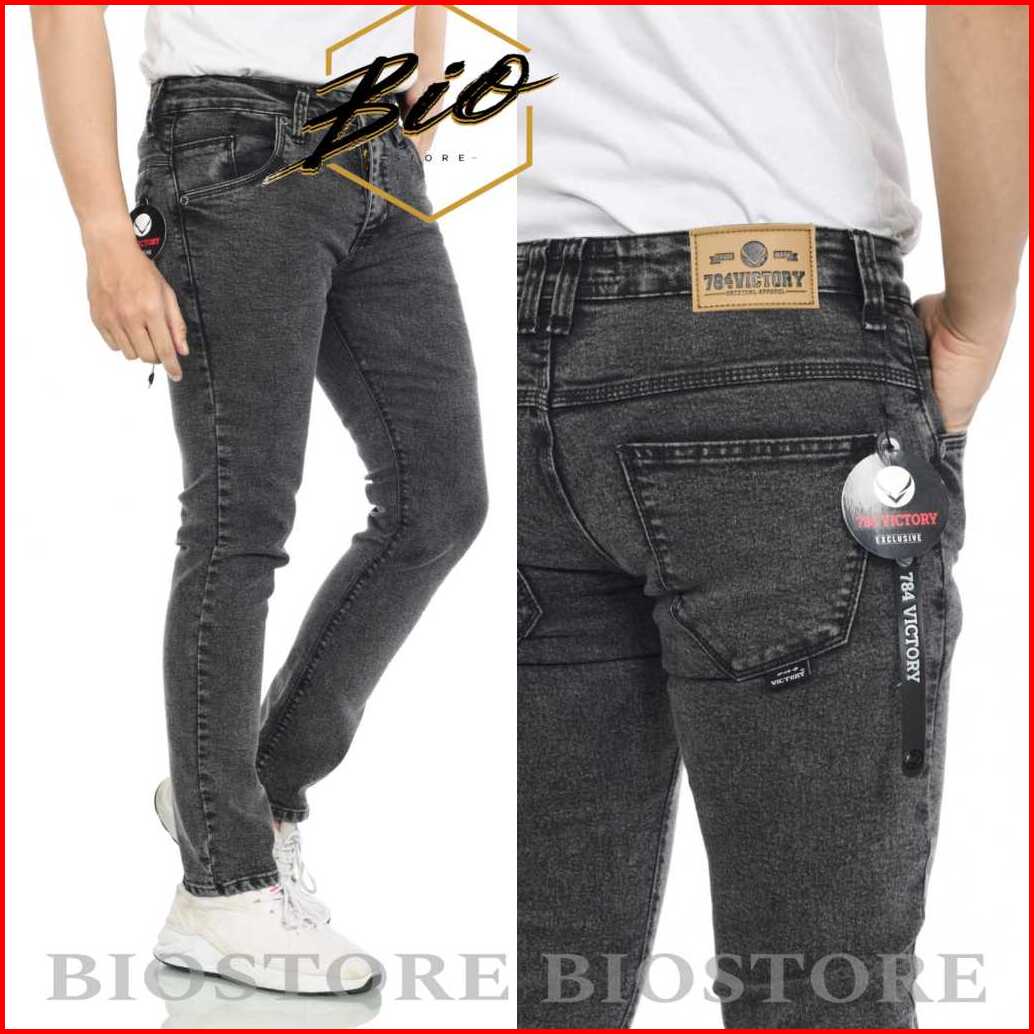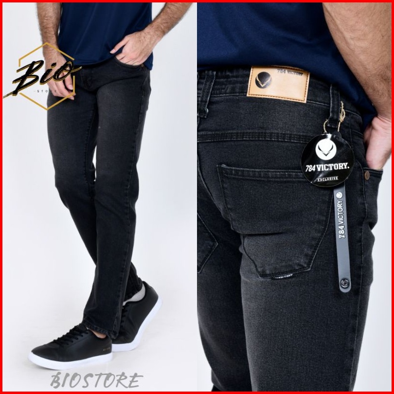 Victory 784 Celana Jeans Panjang Celana Jeans Pria Sknny Slim Fit Panjang Hitam Pekat