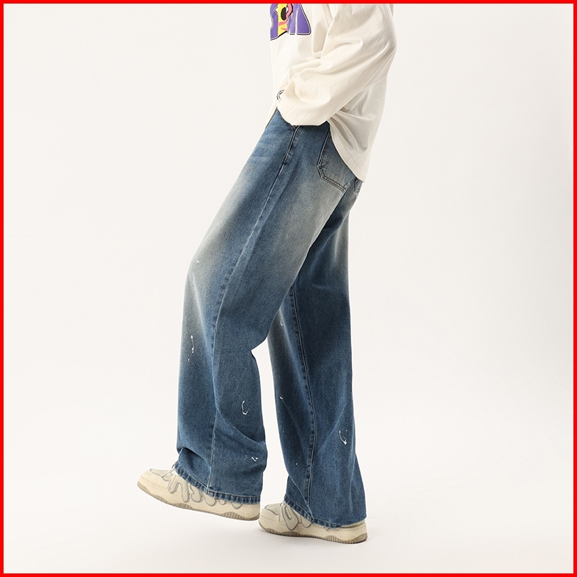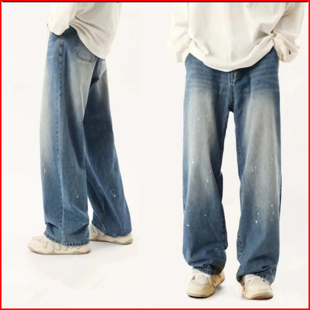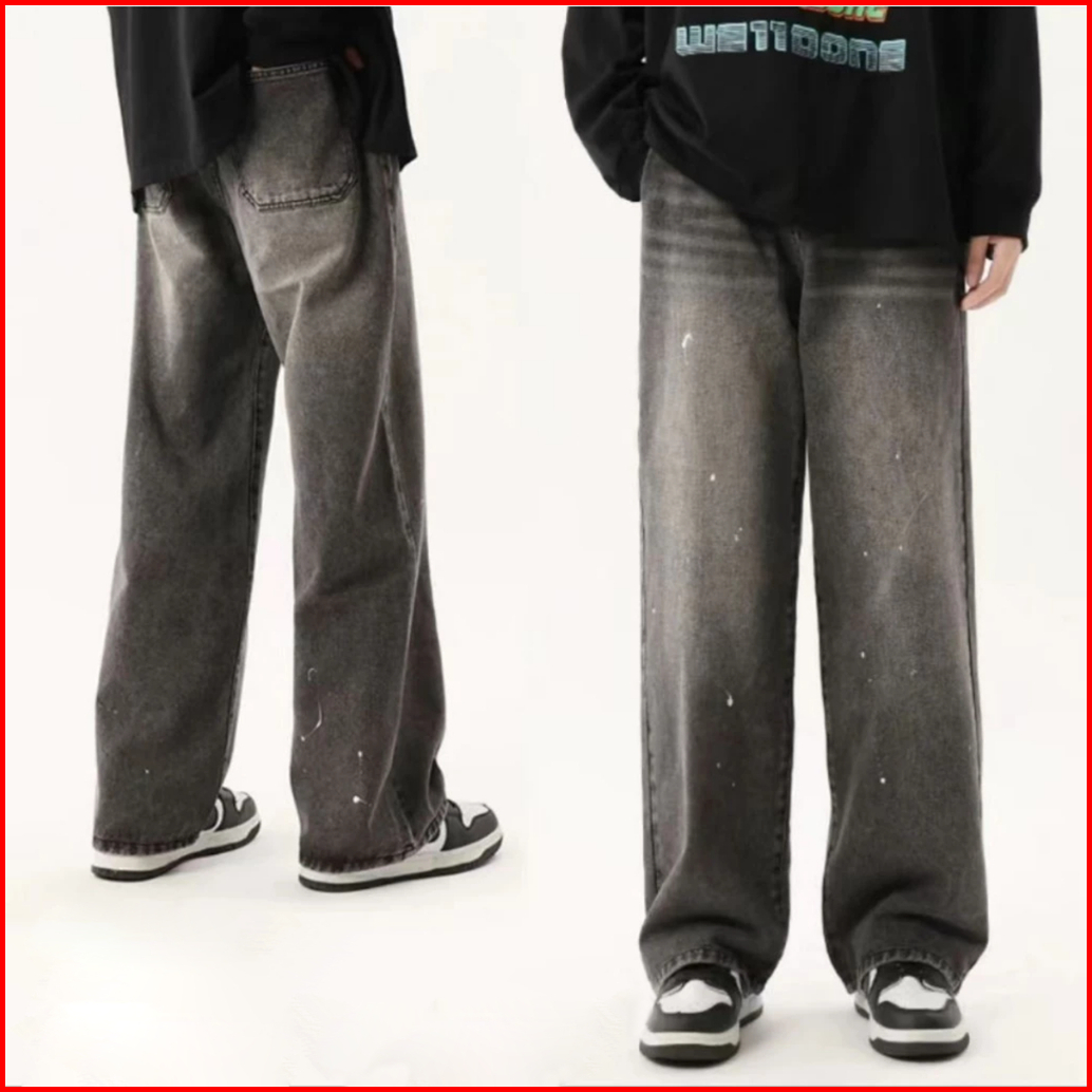 Celana Jeans Pria Hitam Panjang Korean Style Baggy Pants Biru Gombrong Denim Fashion Causal Dewasa Cowok Jens