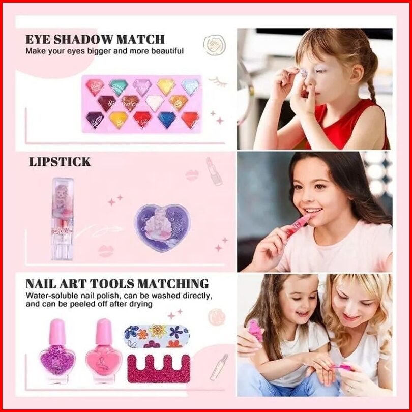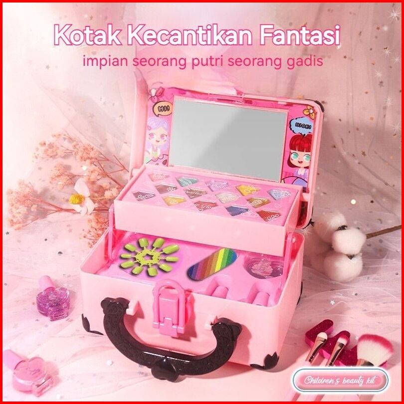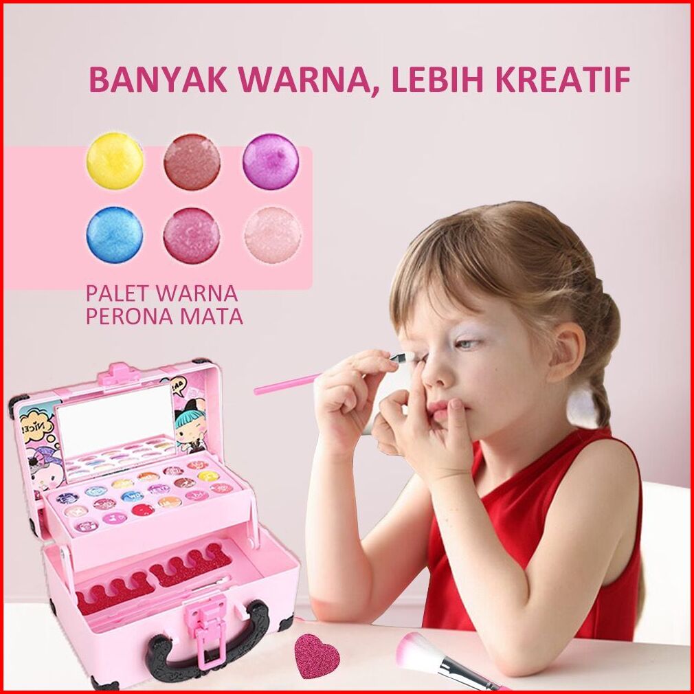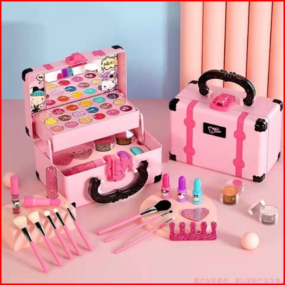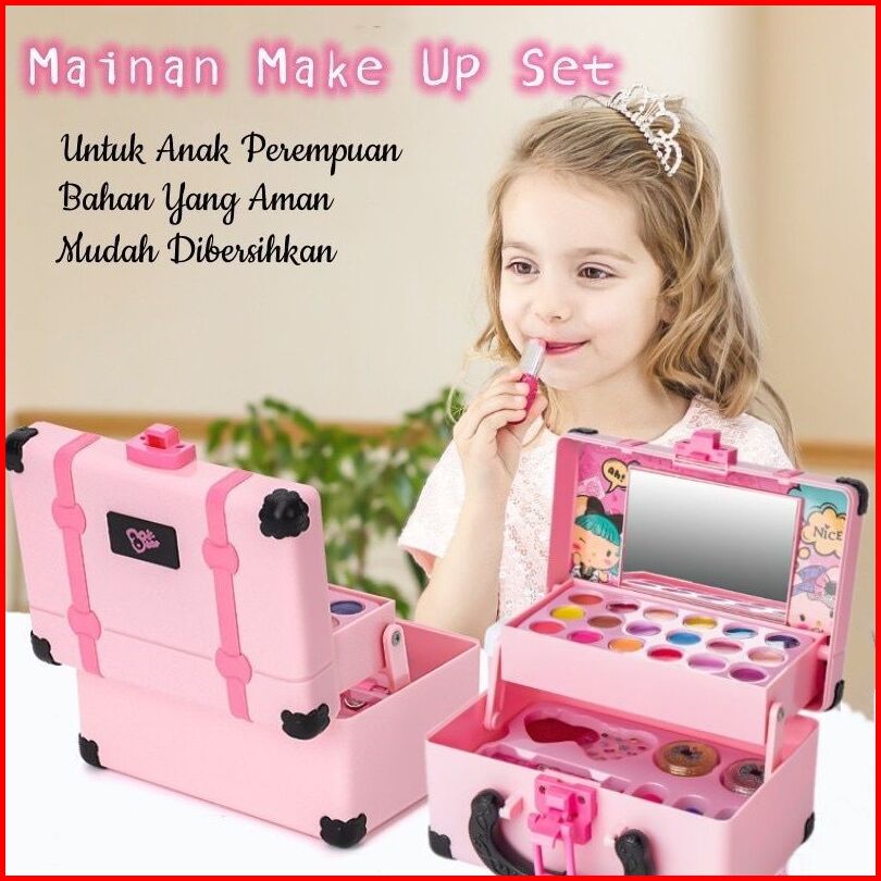 Wd Girls Makeup Toys Kosmetik Kotak Bermain Princess Makeup Girl Toy Play Set Lipstik Eye Shadow Safety Kit Alat Rias An