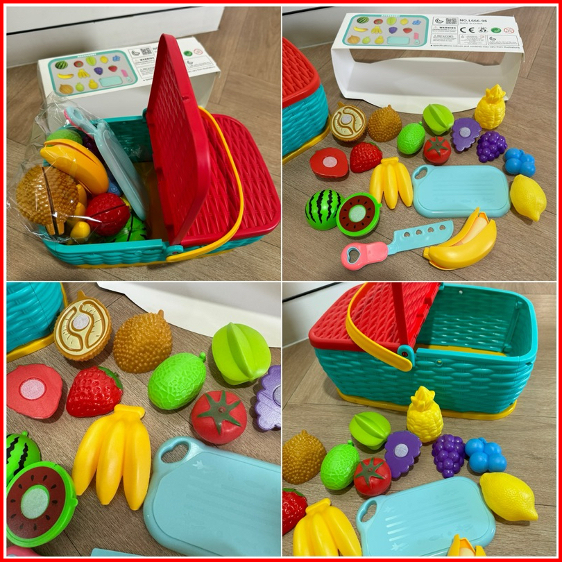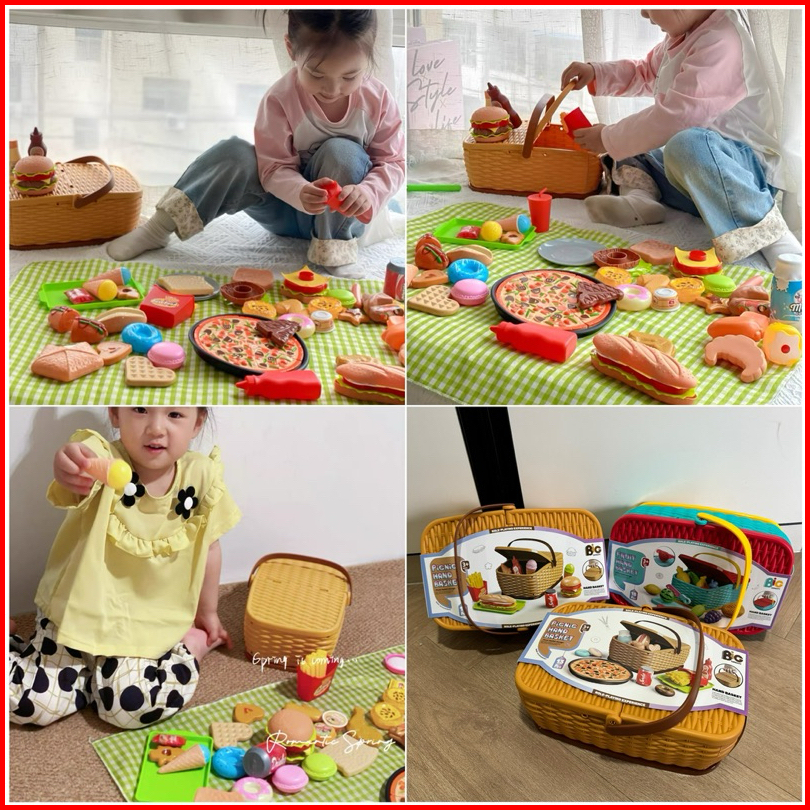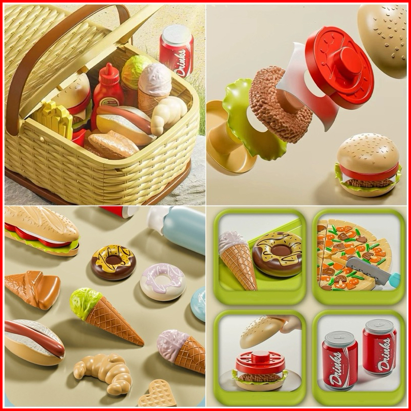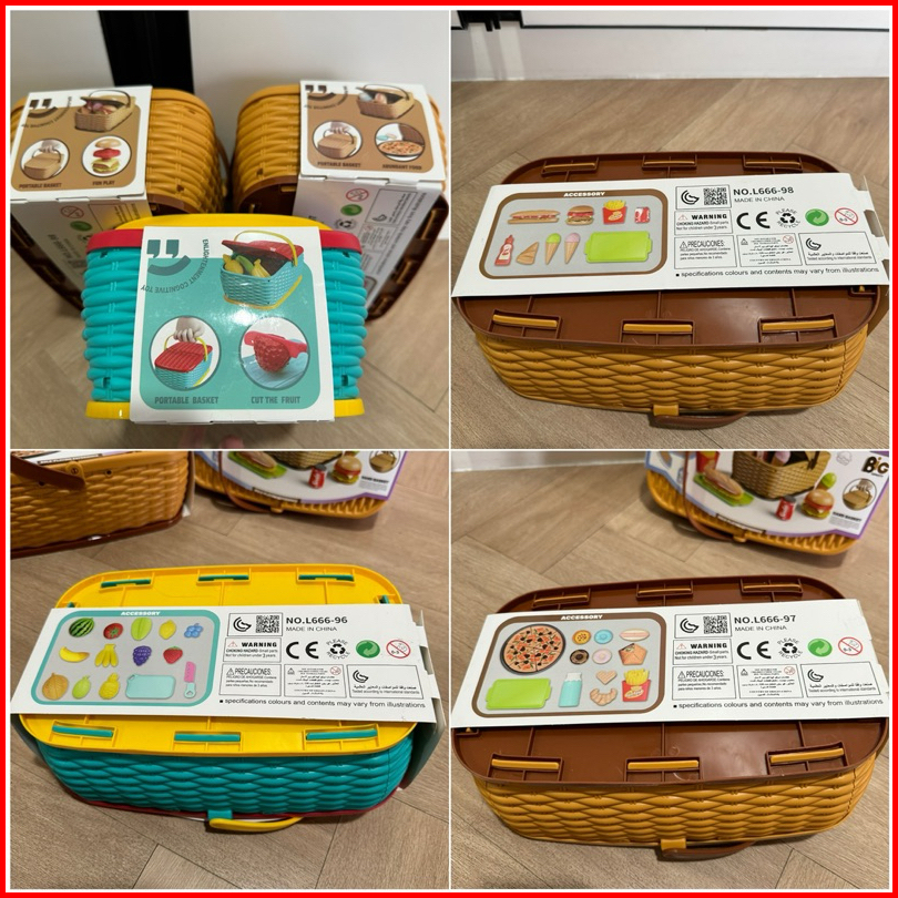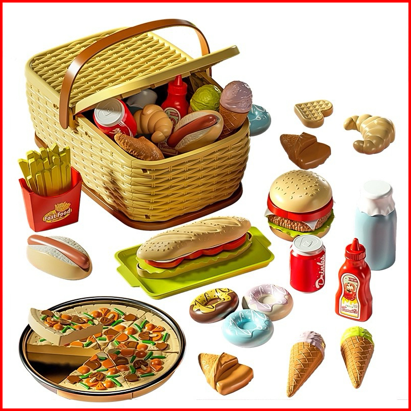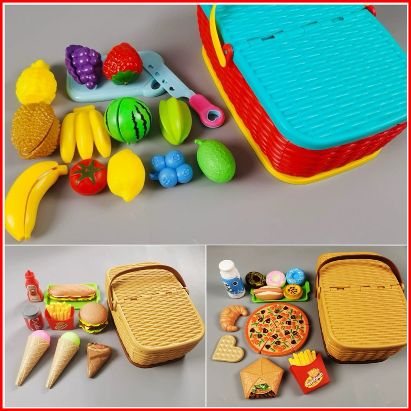 Cutting Food Basket Set Kitchen Burger Pizza Pretend Play Mainan Potong2an