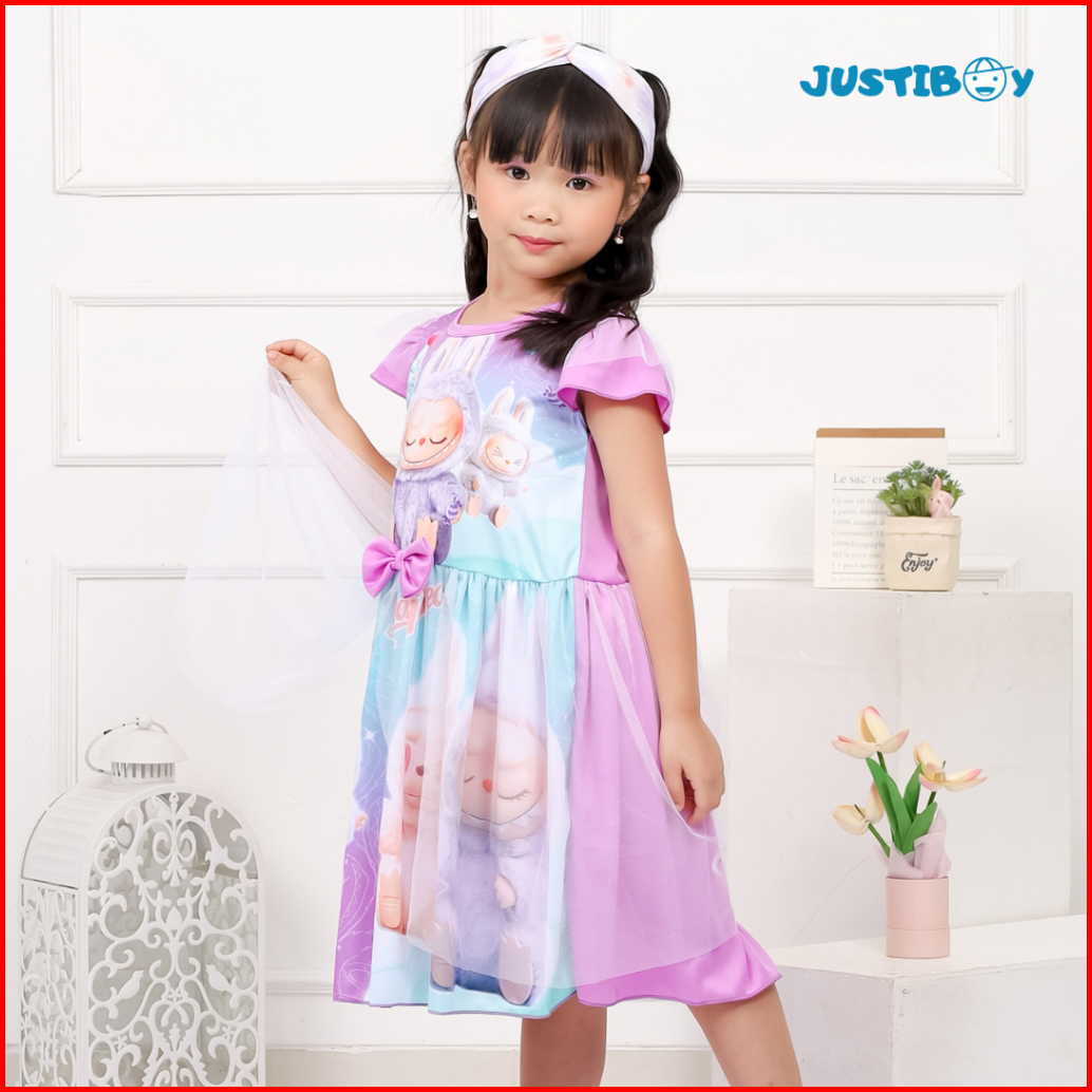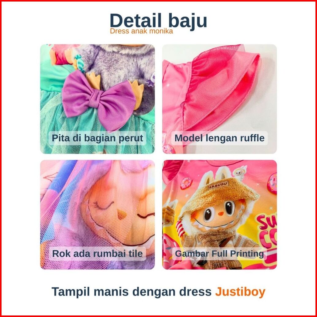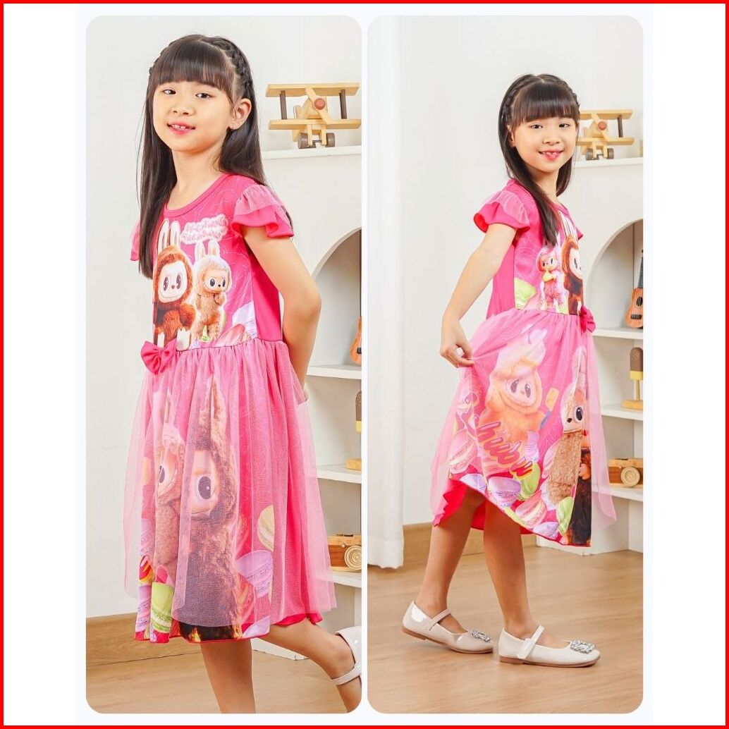 Dress Anak Perempuan Labubu Lengan Ruffle Daster Anak Cewe The Monster Umur 2 - 7 Tahun Monika