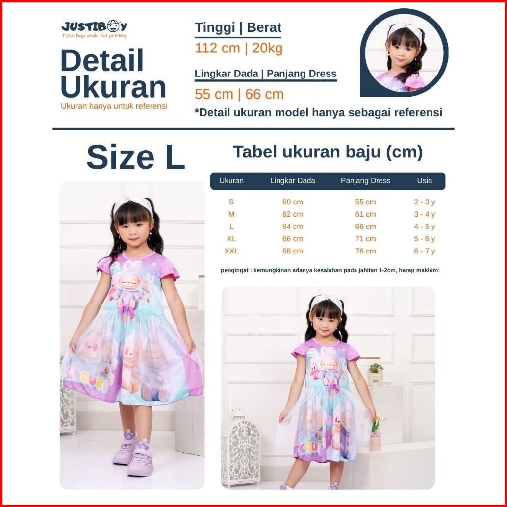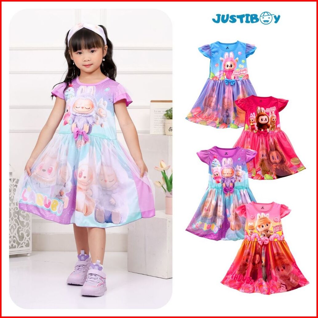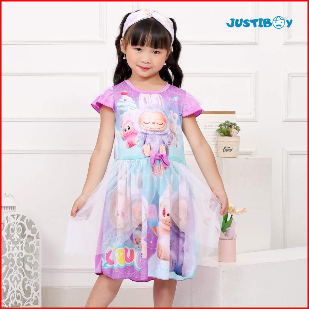 Dress Anak Perempuan Labubu Lengan Ruffle Daster Anak Cewe The Monster Umur 2 - 7 Tahun Monika