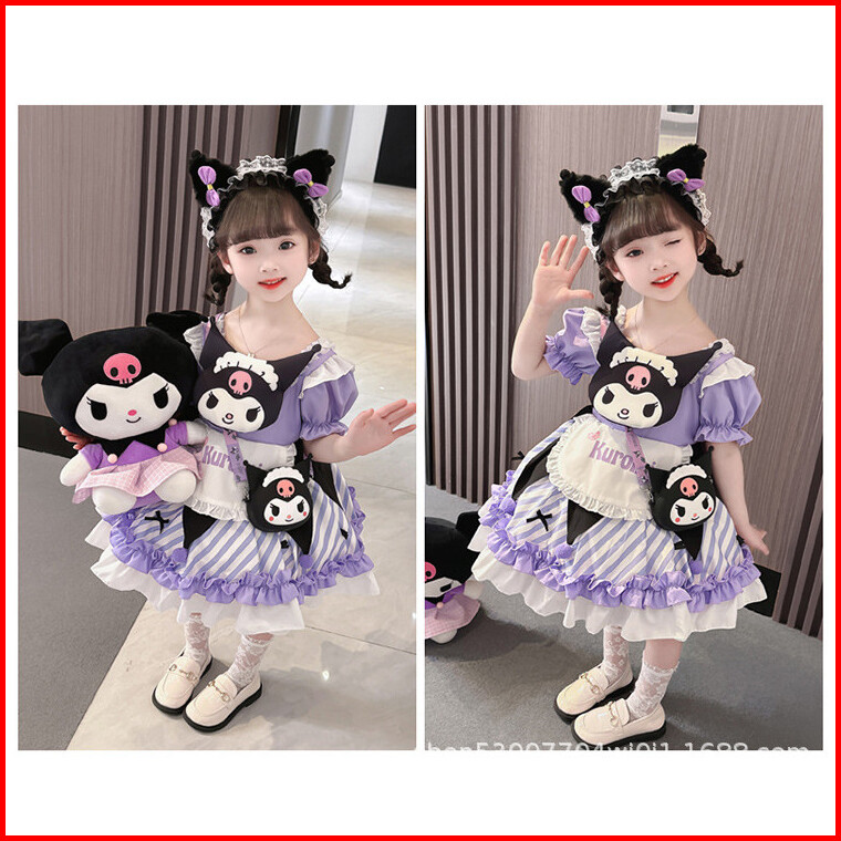 Dress Anak Perempuan Import Birthday Gaun Kuromi Purple Lucu Tutu Lengan Balon Girl Sanrio Fashion