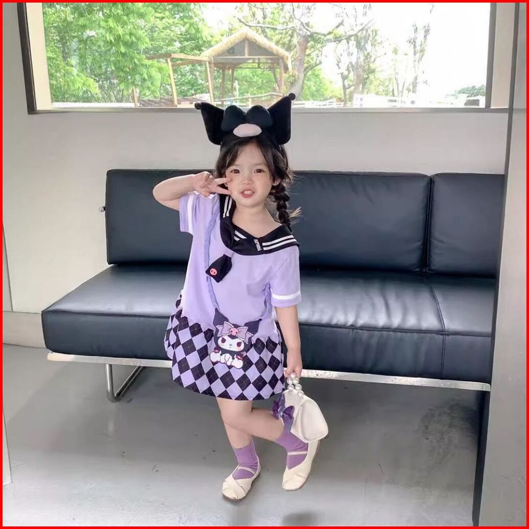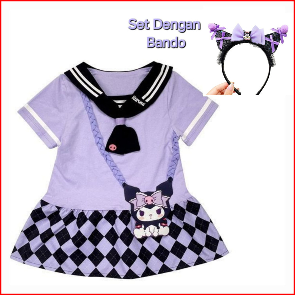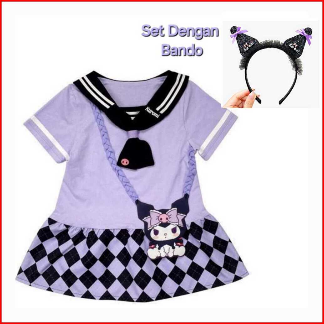 Dress Pesta Kostum Sanrio Kuromi Dasi Ungu Cute Anak Perempuan