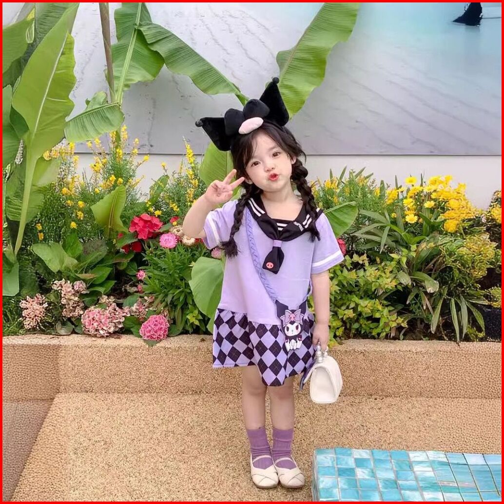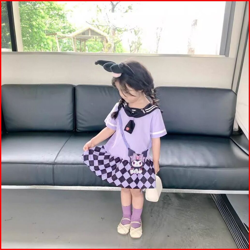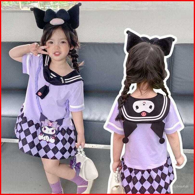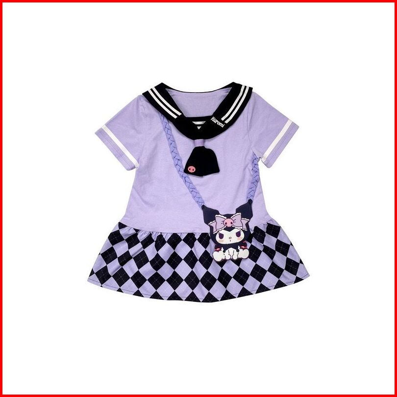 Dress Pesta Kostum Sanrio Kuromi Dasi Ungu Cute Anak Perempuan