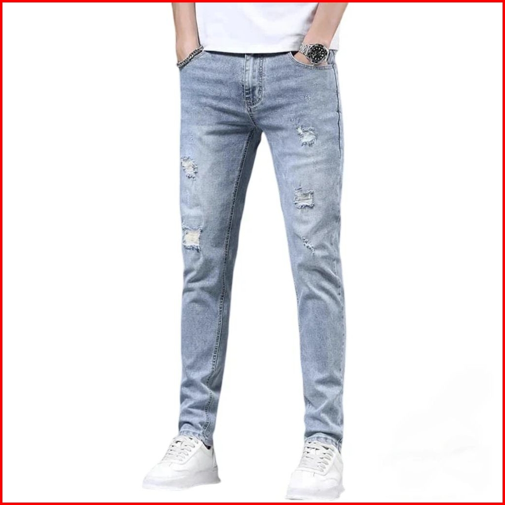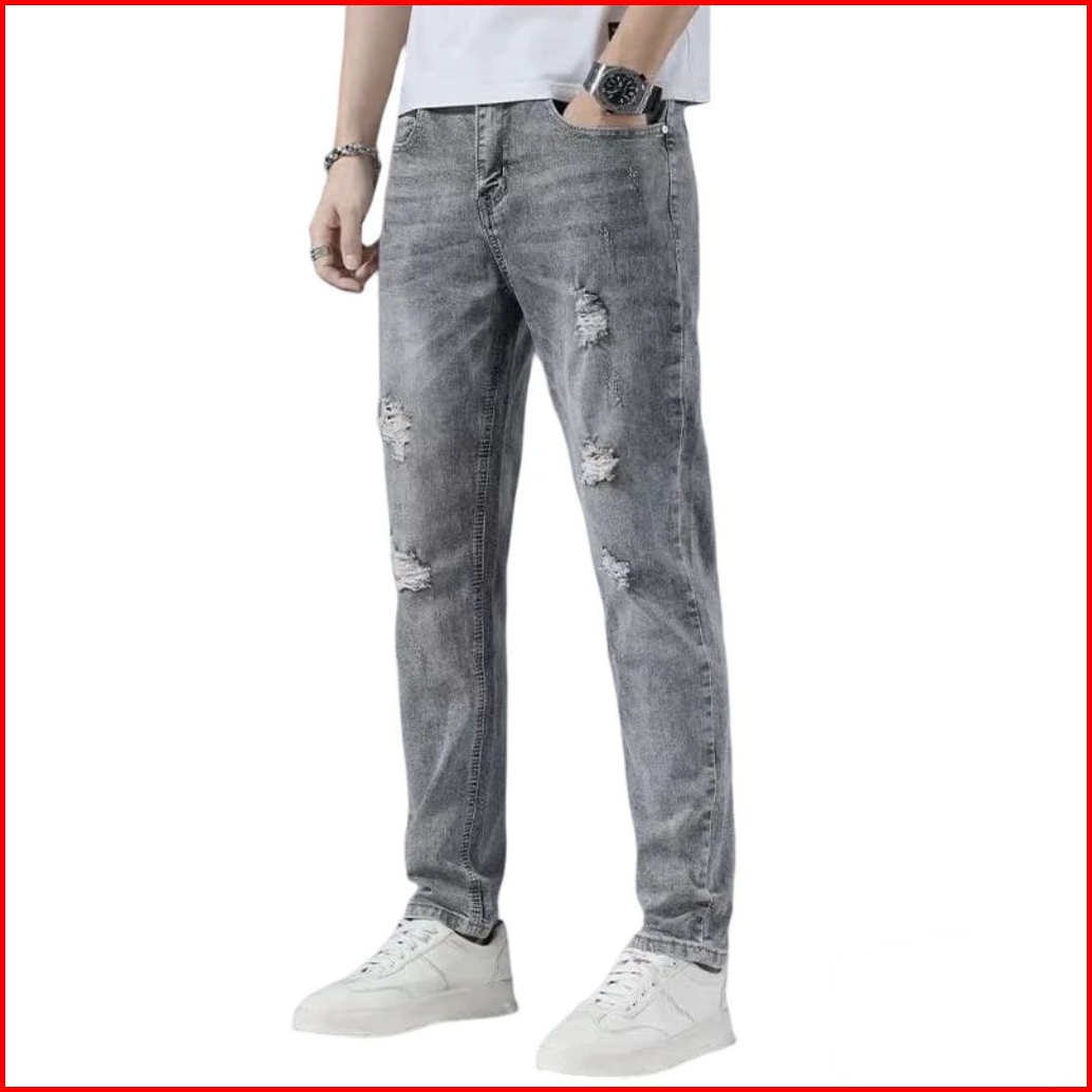 Celana Jeans Pria Sobek Abu Grey Slimfit Stretch Panjang Cowok Ripped Skinny Pensil Celana Denim Dewasa Robek Korea Styl