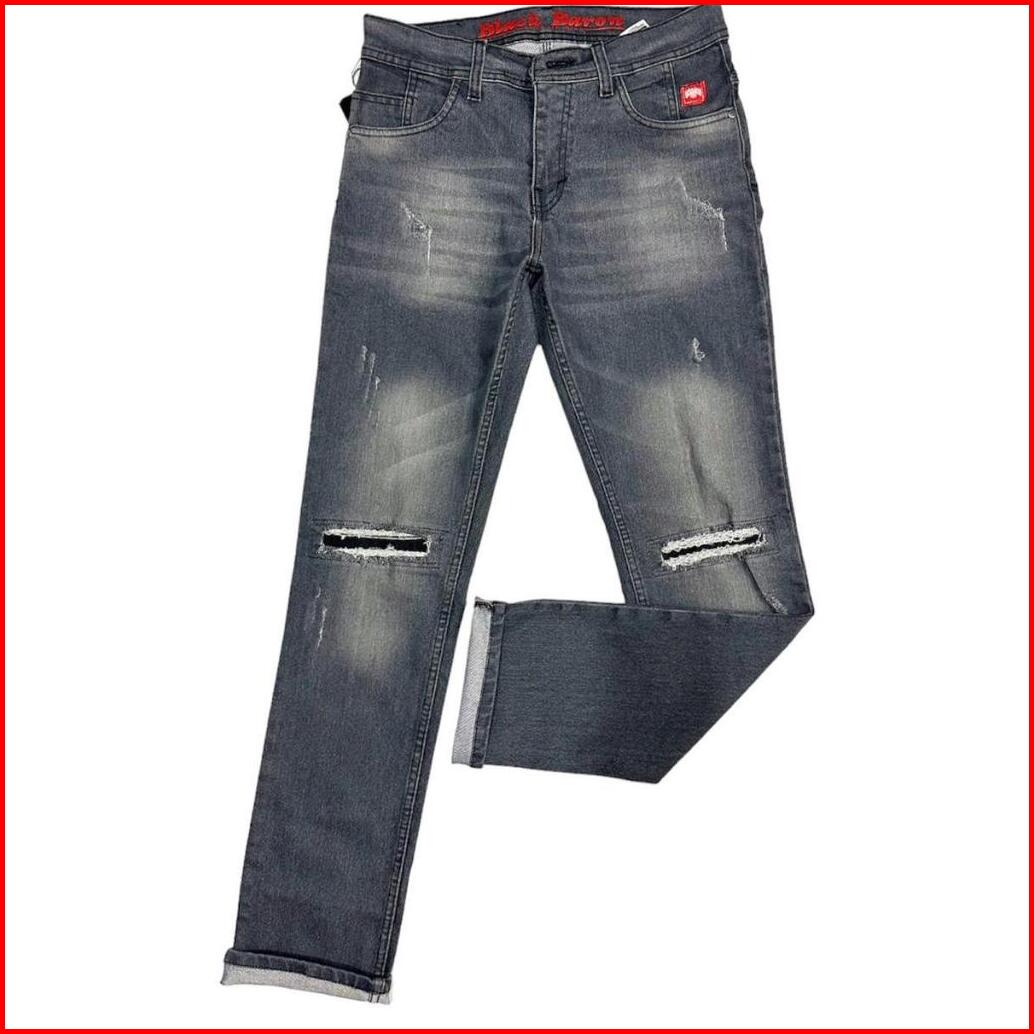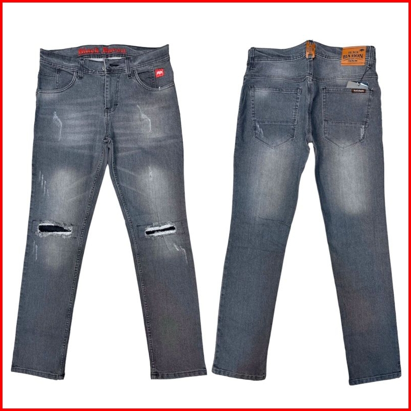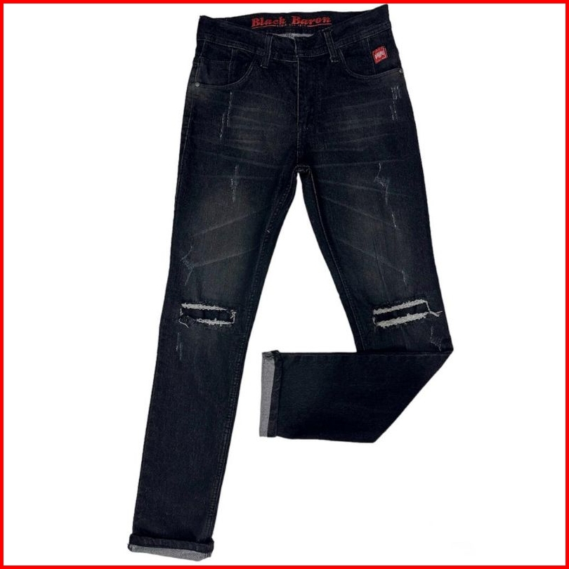 Celana Denim Sobek Sobek Panjang Pria Black Baron