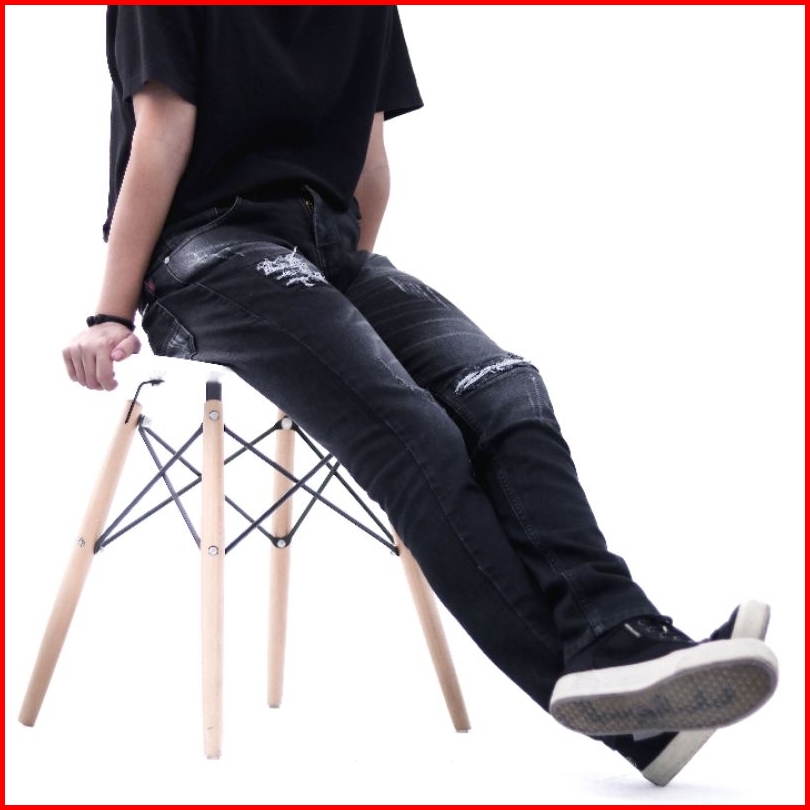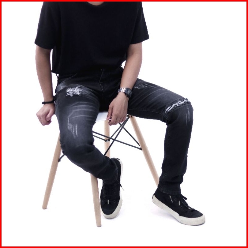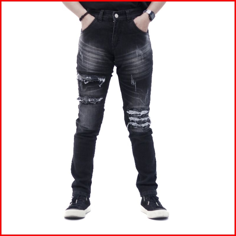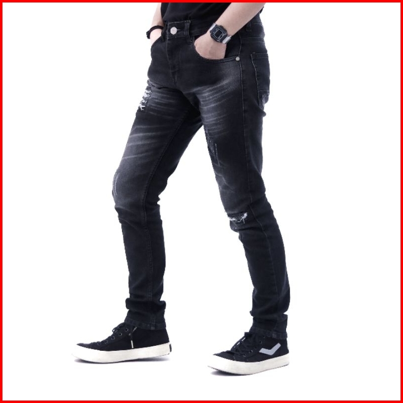 Ferskillend Celana Jeans Sobek Pria Hitam Black Jazz Bahan Melar Size 2834 Moscov