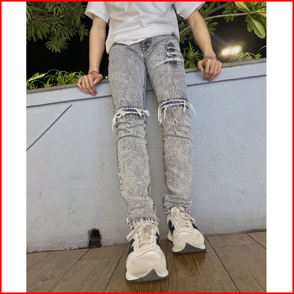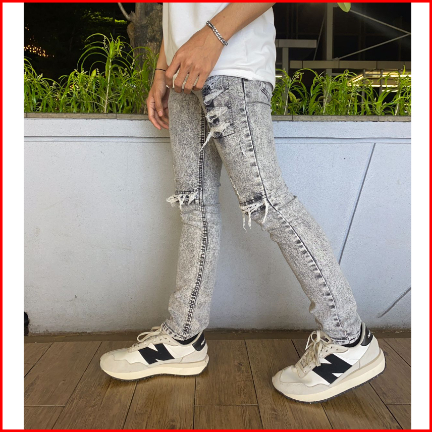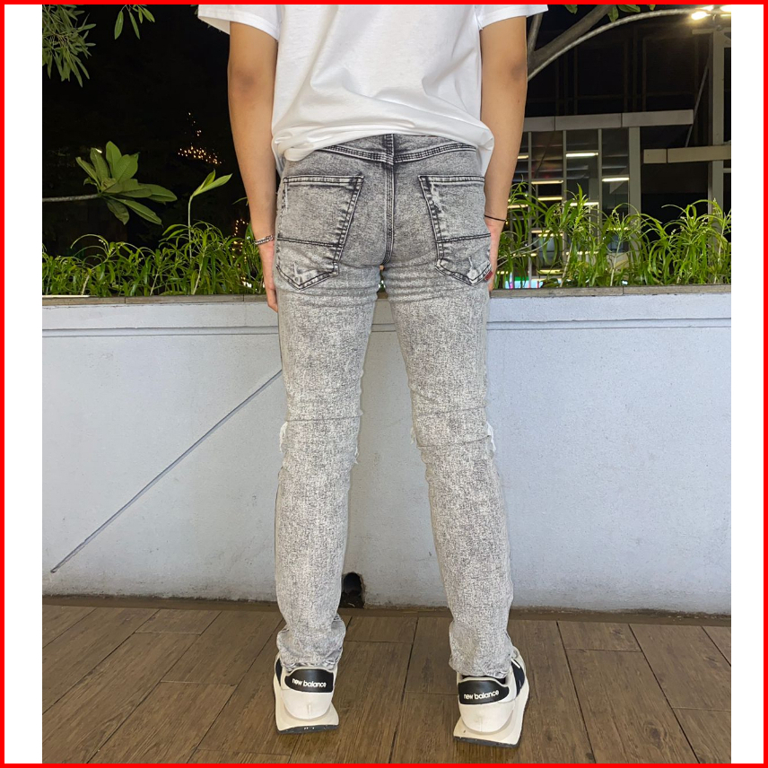 Sefan Jeans Celana Pria Bikers Abu Sandwash Ripped Grey Snow Slimfit Premium 2734