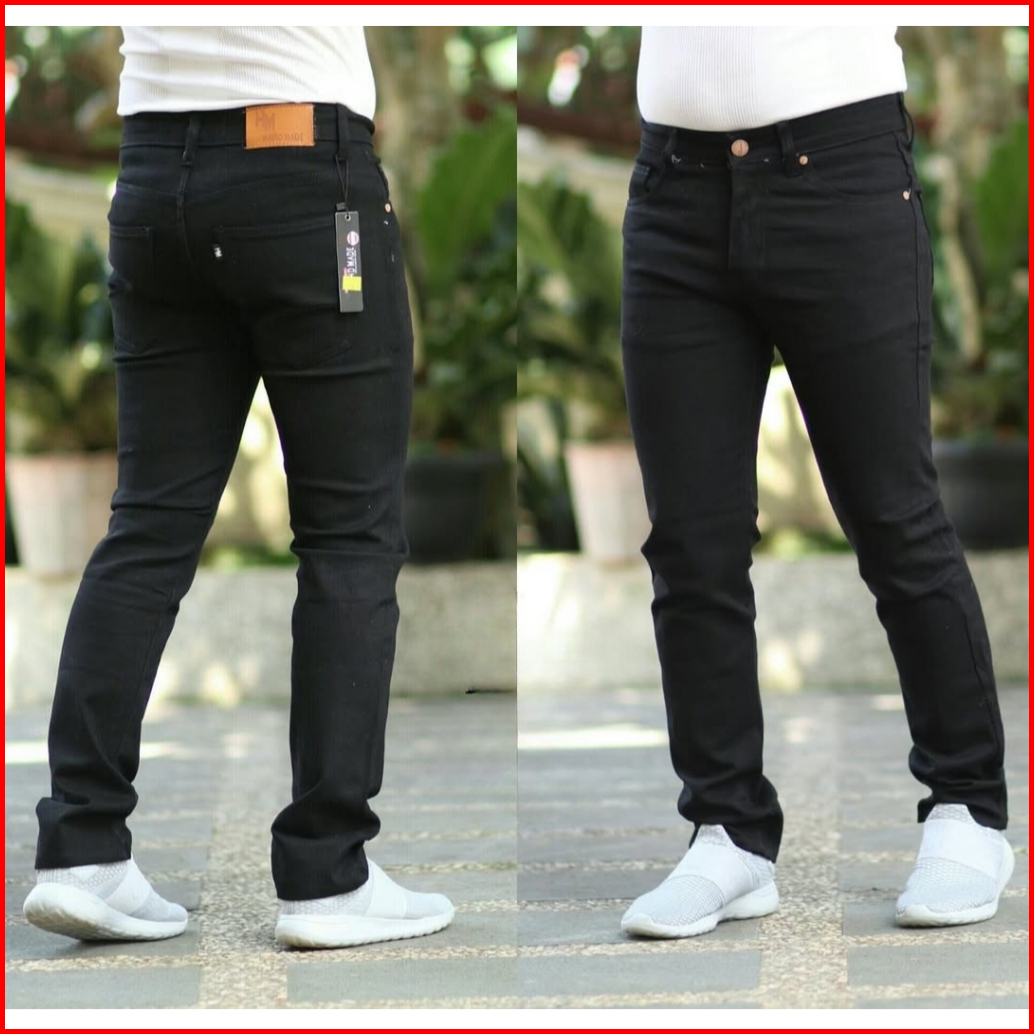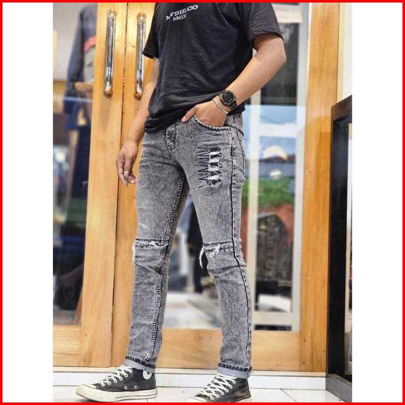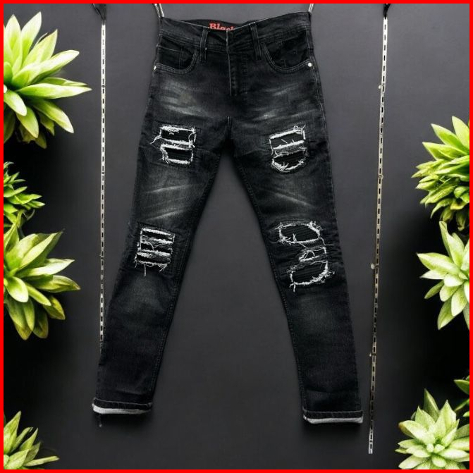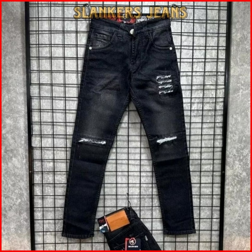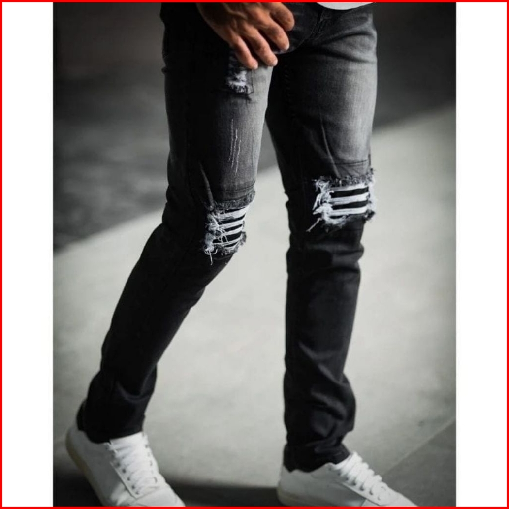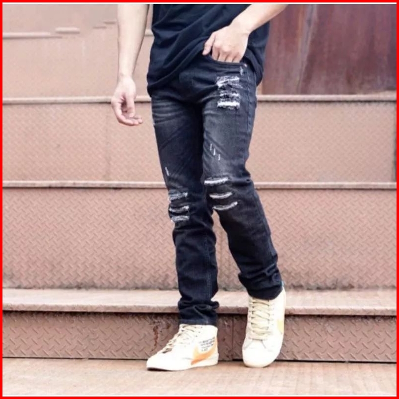 Celana Hitam Ripped Jeans Pria Celana Black Jeans Sobek Bahan Soft Stretch Premium Denim