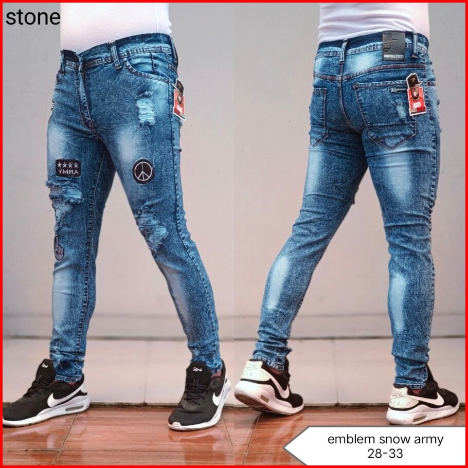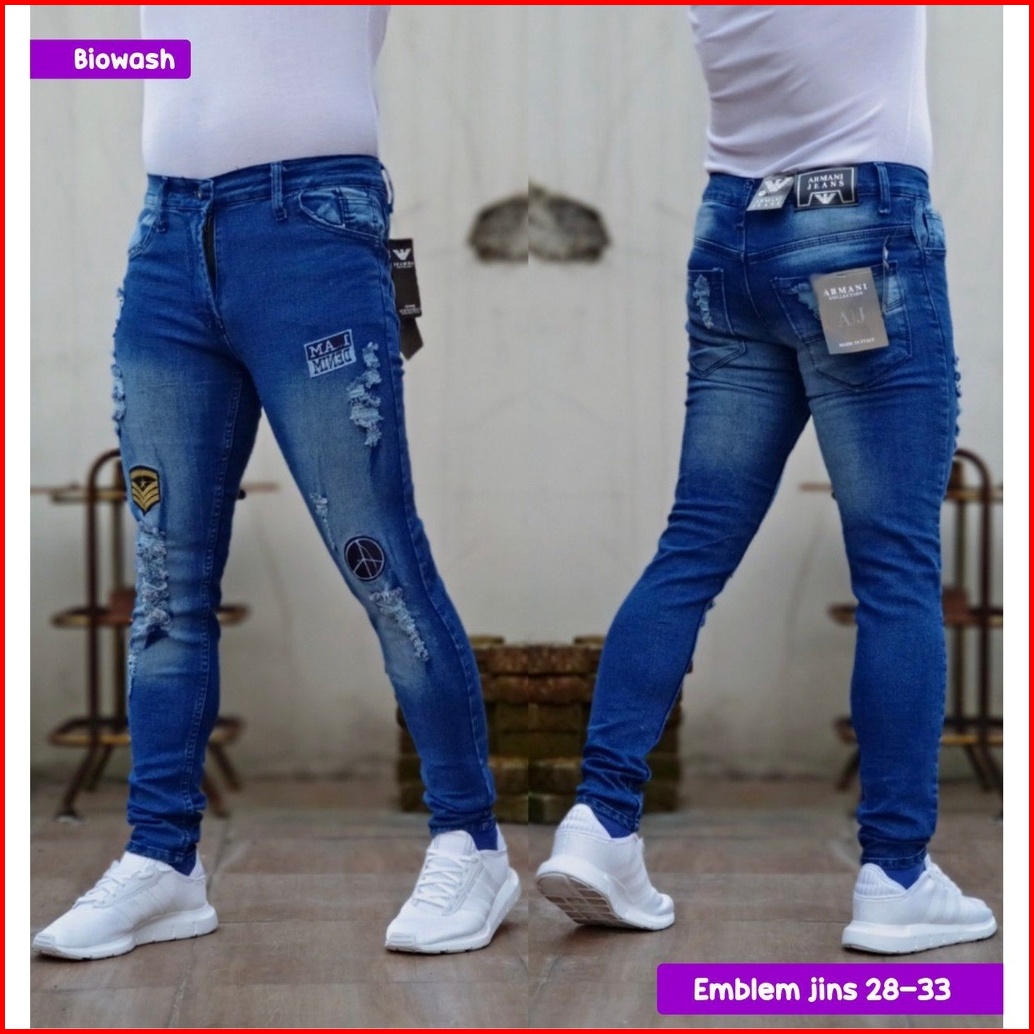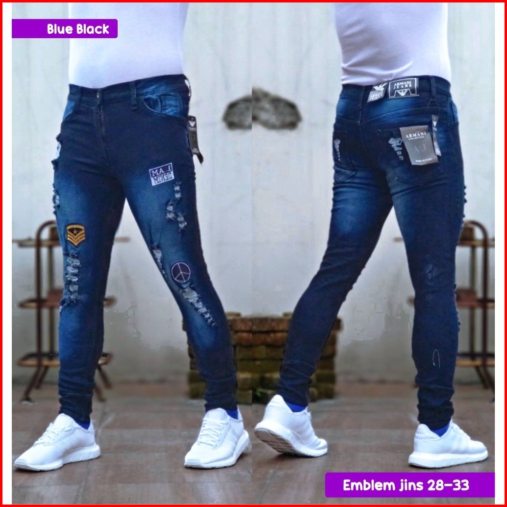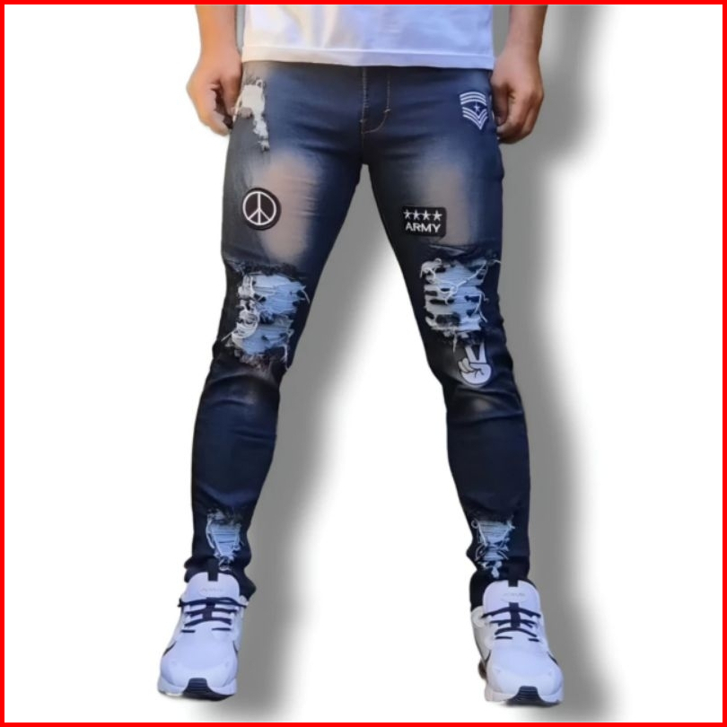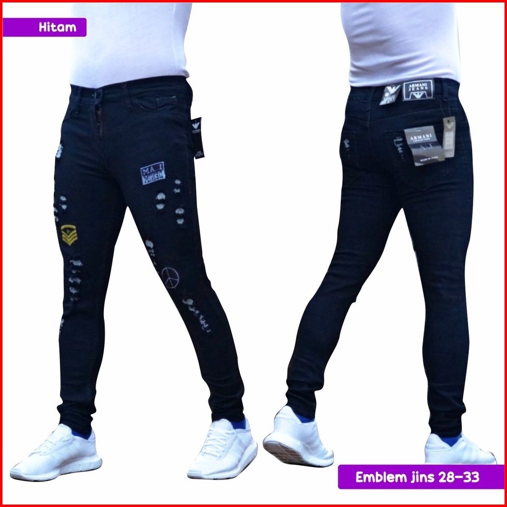 Celana Jeans Panjang Pria Sobek Emblem Bordil Keren Premium Distro