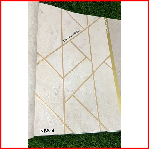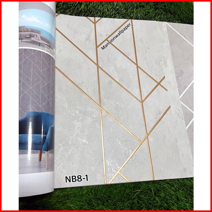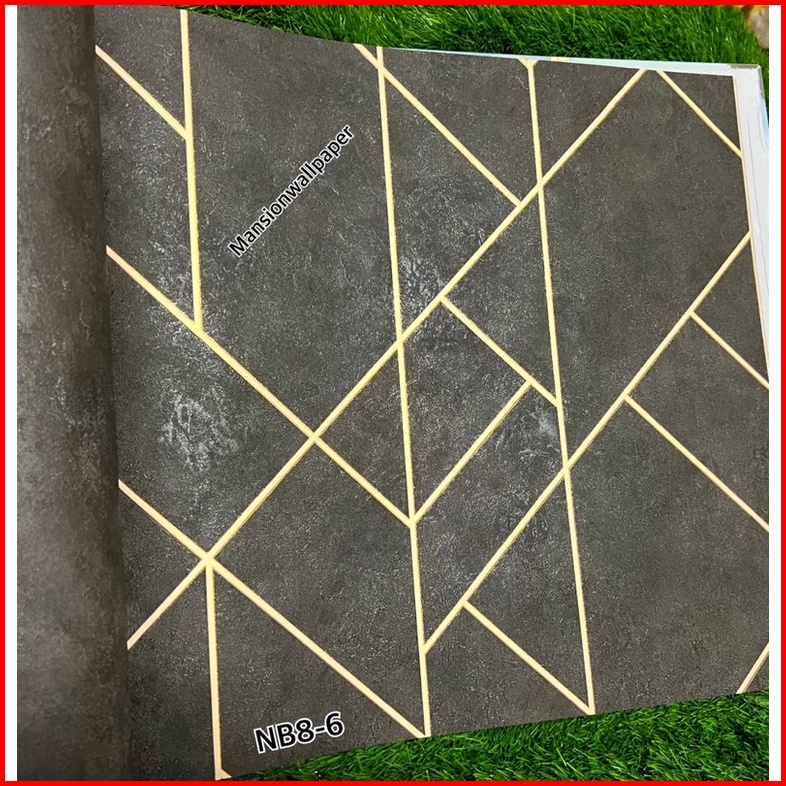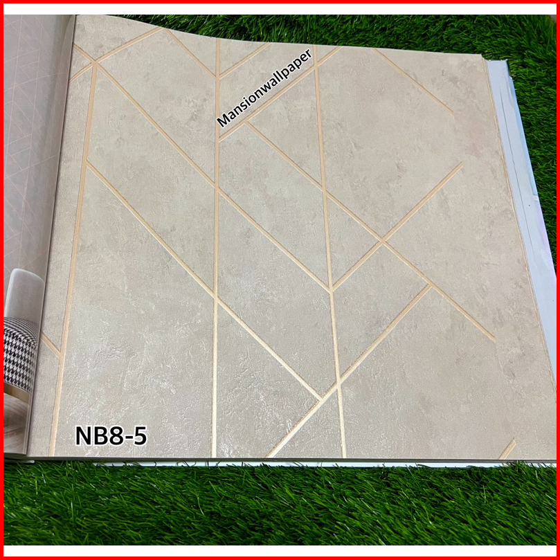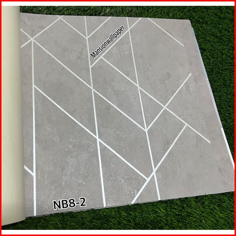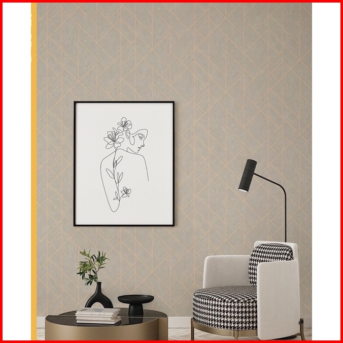 Wallpaper Dinding Premium Geometri List Silver Abu Grey Cream Abstrak