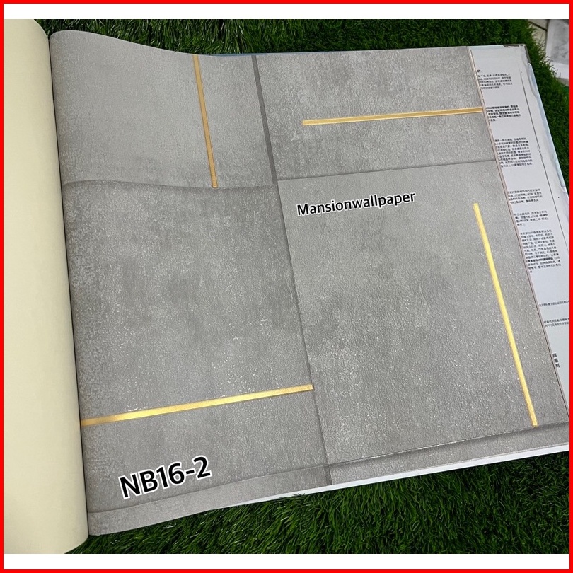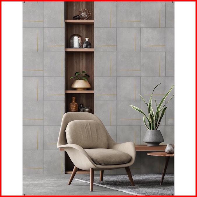 Wallpaper Dinding Premium Simple Semen Acian List Silver Coklat Abu Kotak Industrial Modern