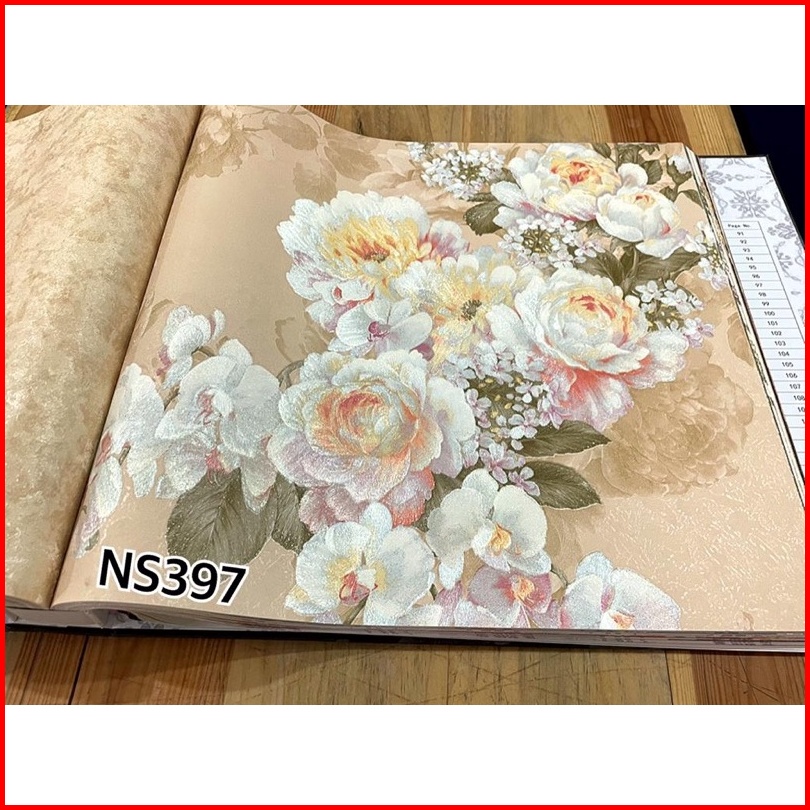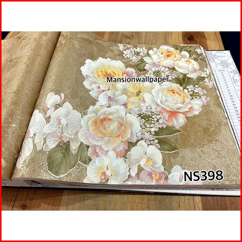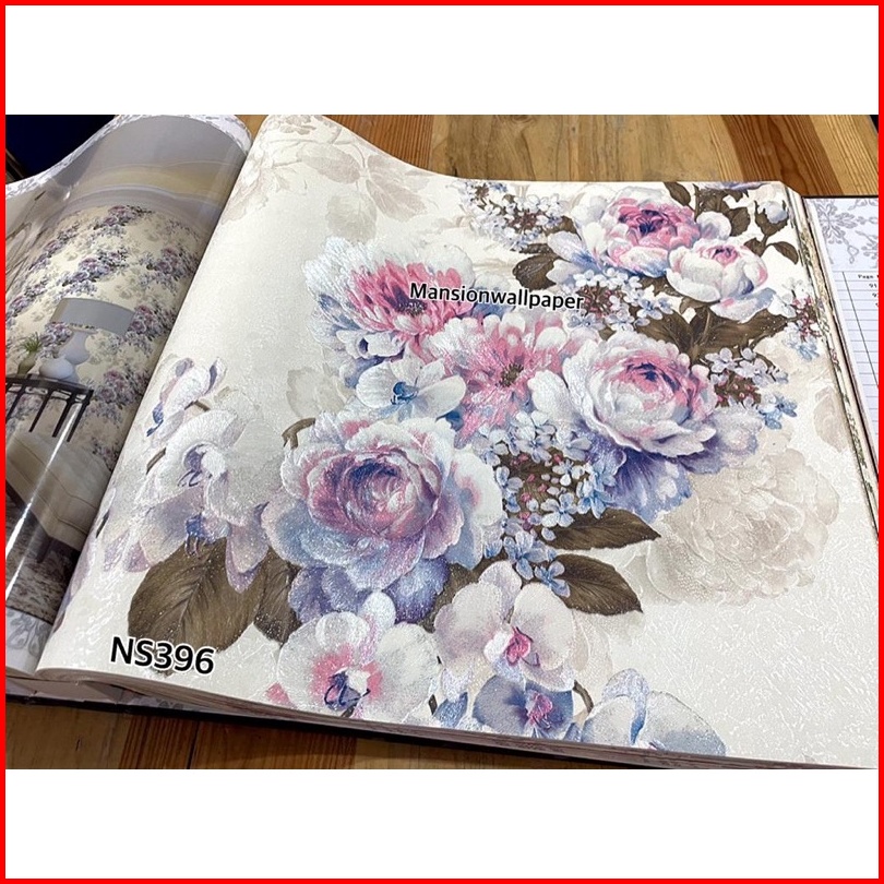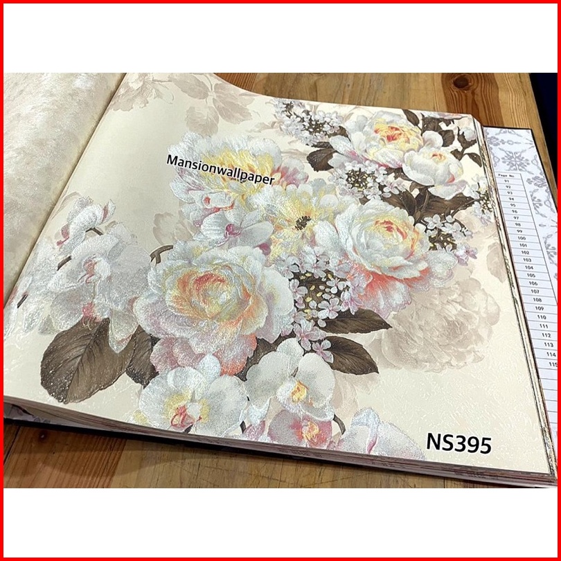 Wallpaper Dinding Bunga Mawar Besar Cream Ungu Hitam Peach