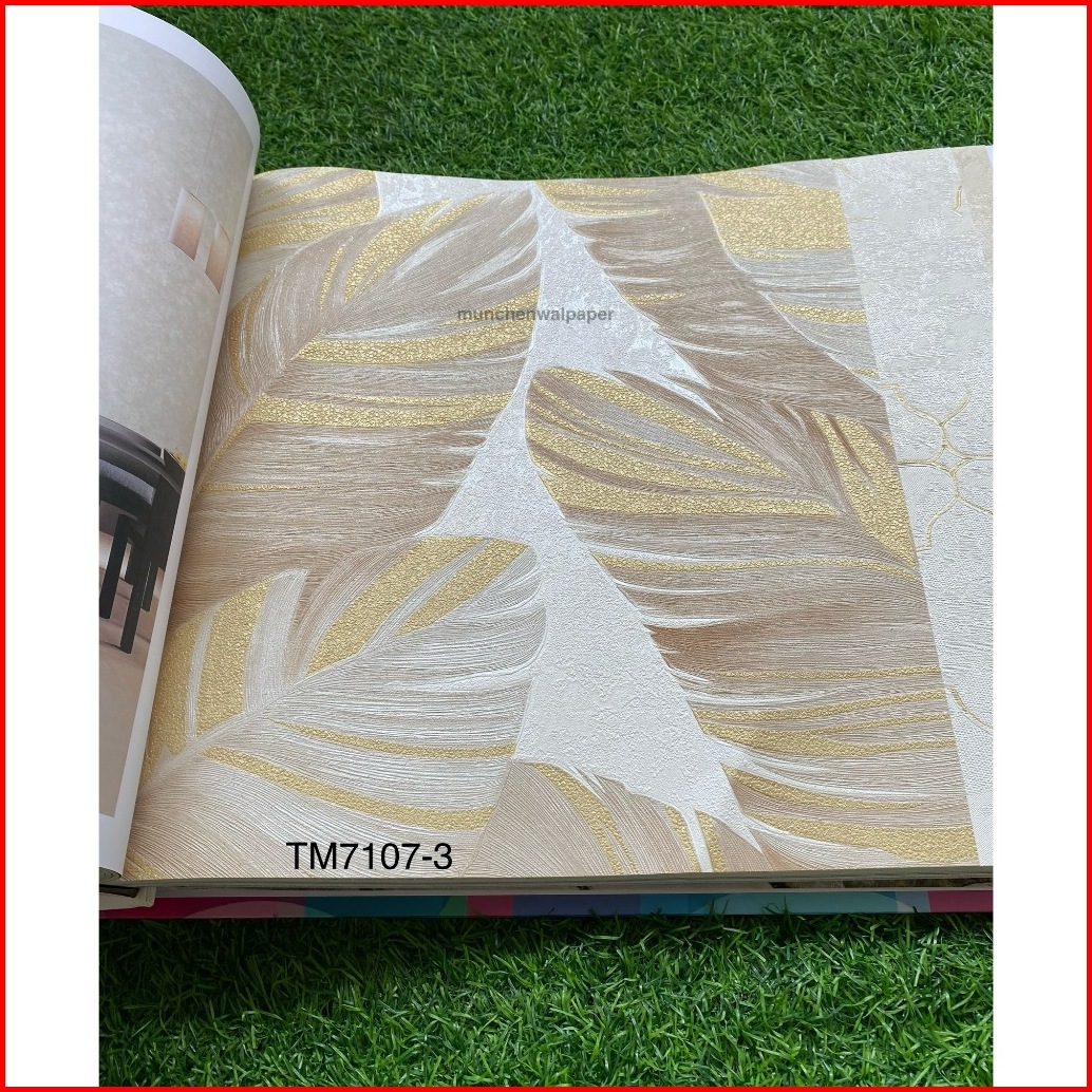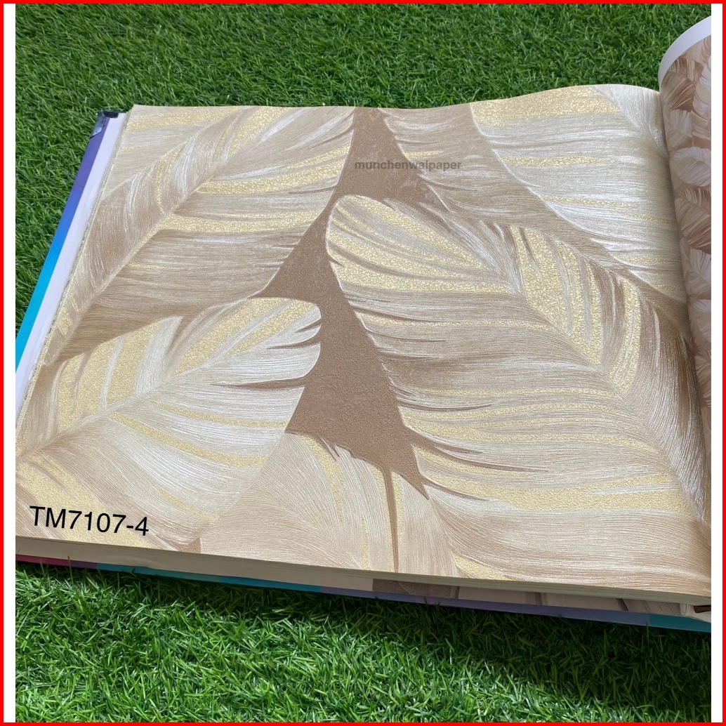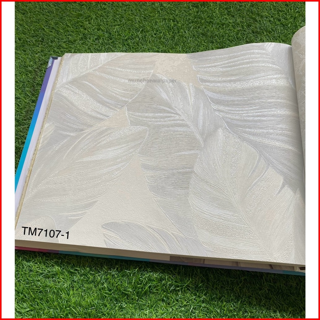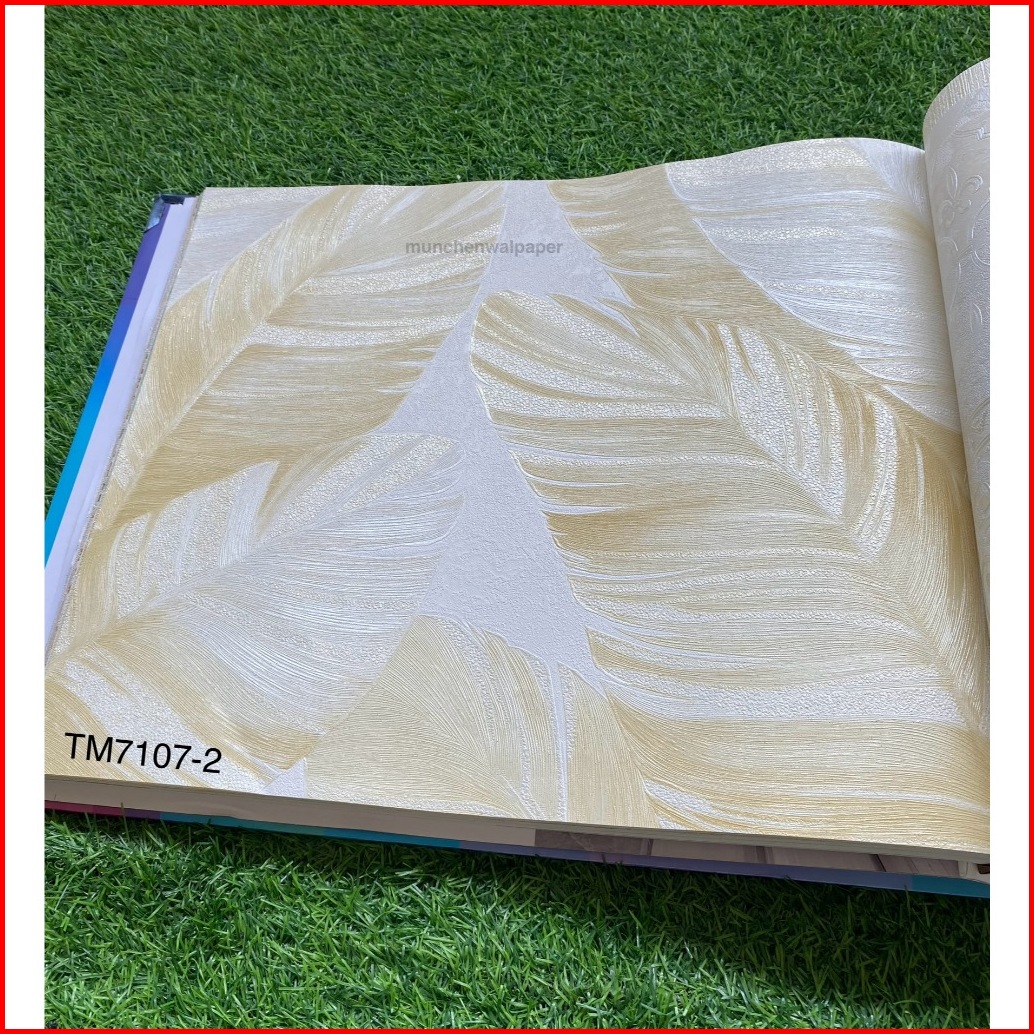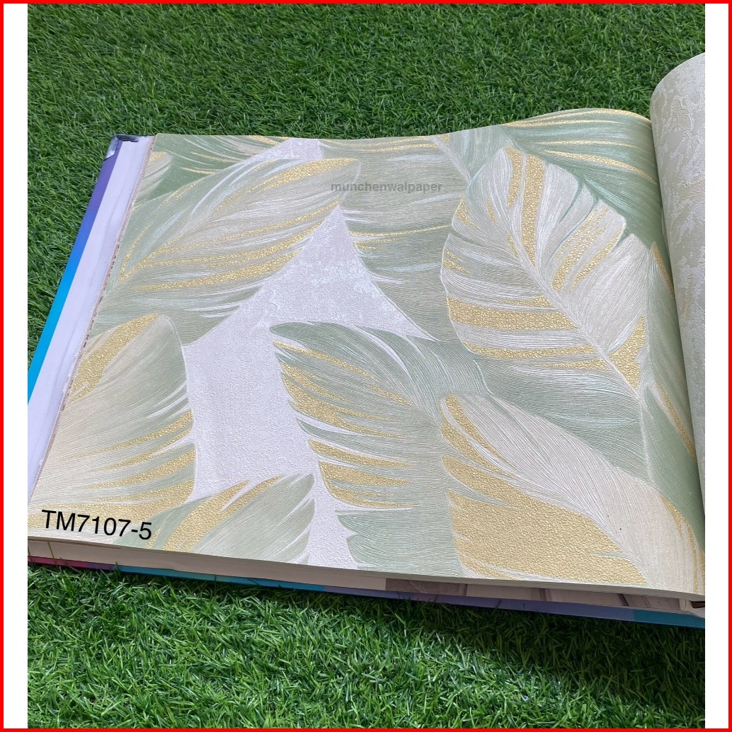 Wallpaper Dinding Siluet Bulu Daun Floral Hijau Cream Coklat Mocca Abu Grey