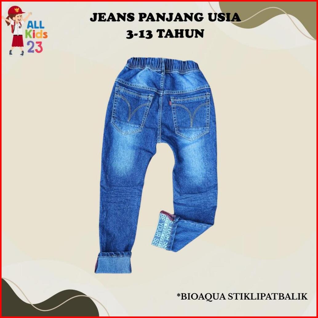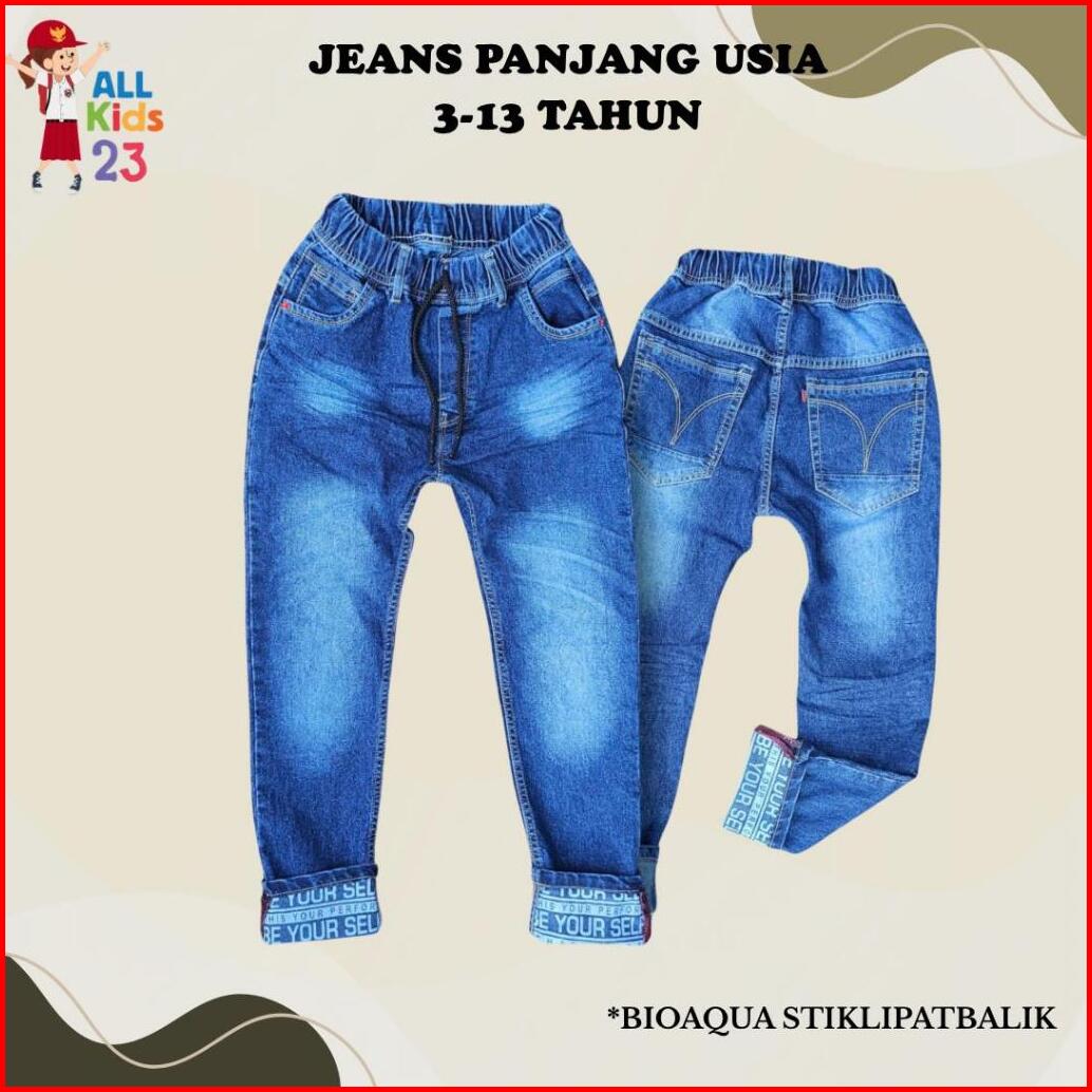 Celana Jeans Anak Variasi Stik Lipat Bawah Motif Bawah Usia 4-13 Tahun