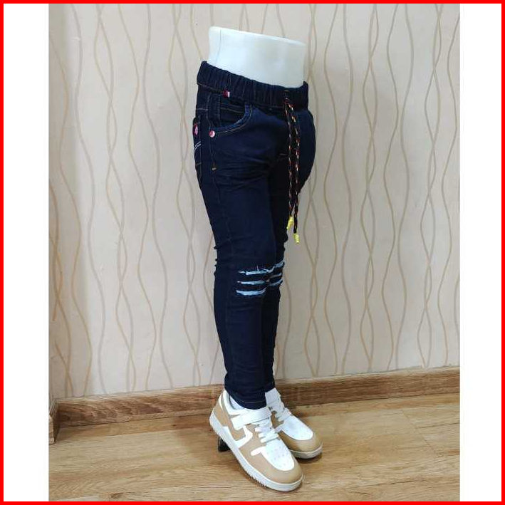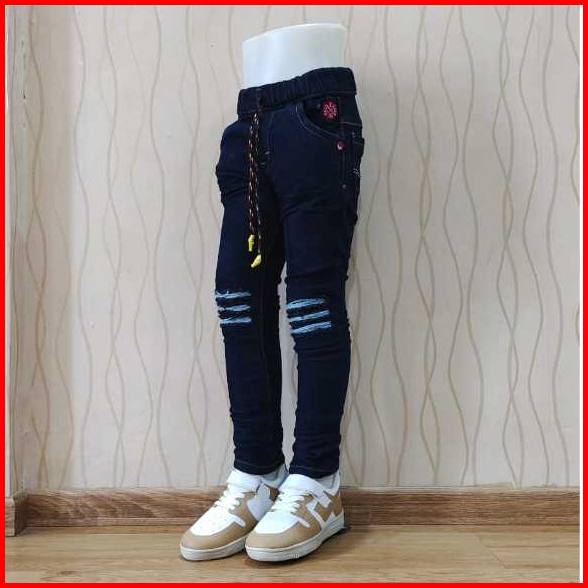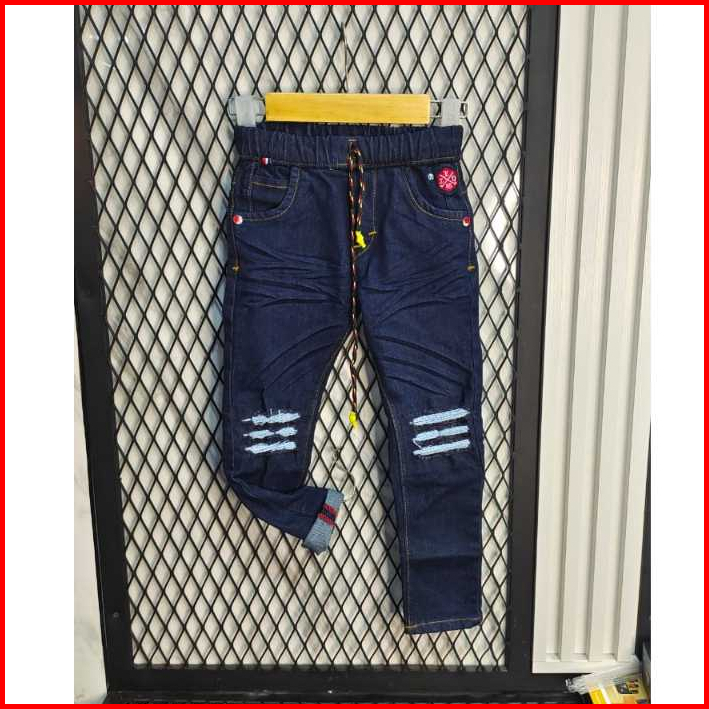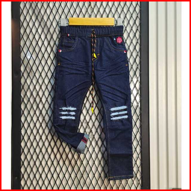 Celana Panjang Jeans Stretch Anak Laki Usia 4 - 12 Tahun Bahan Jeans Stretch Melar Model Sobek Lutut Gaul Tidak Tembus D
