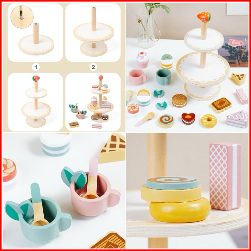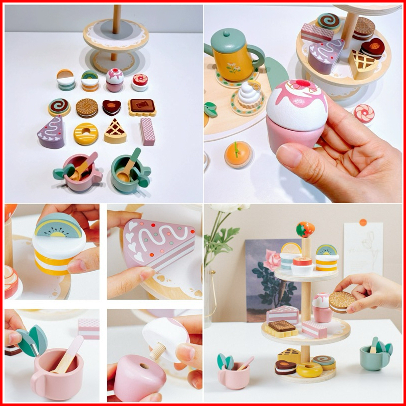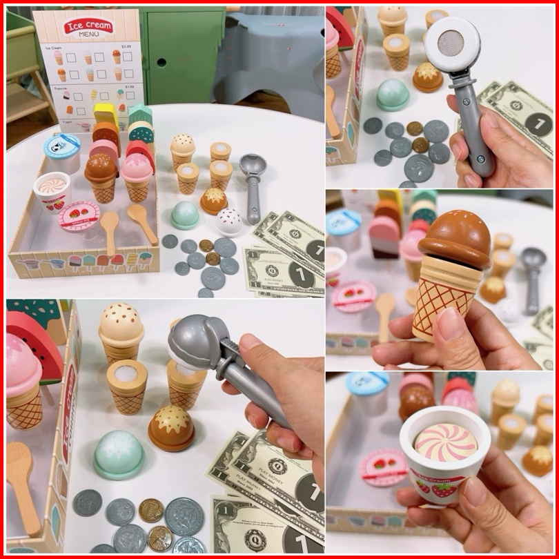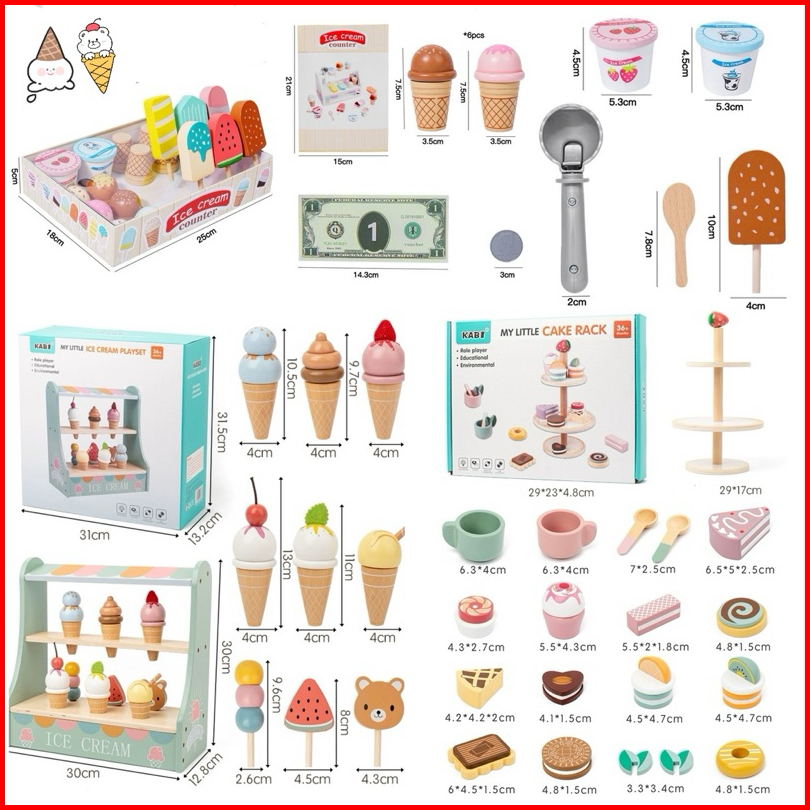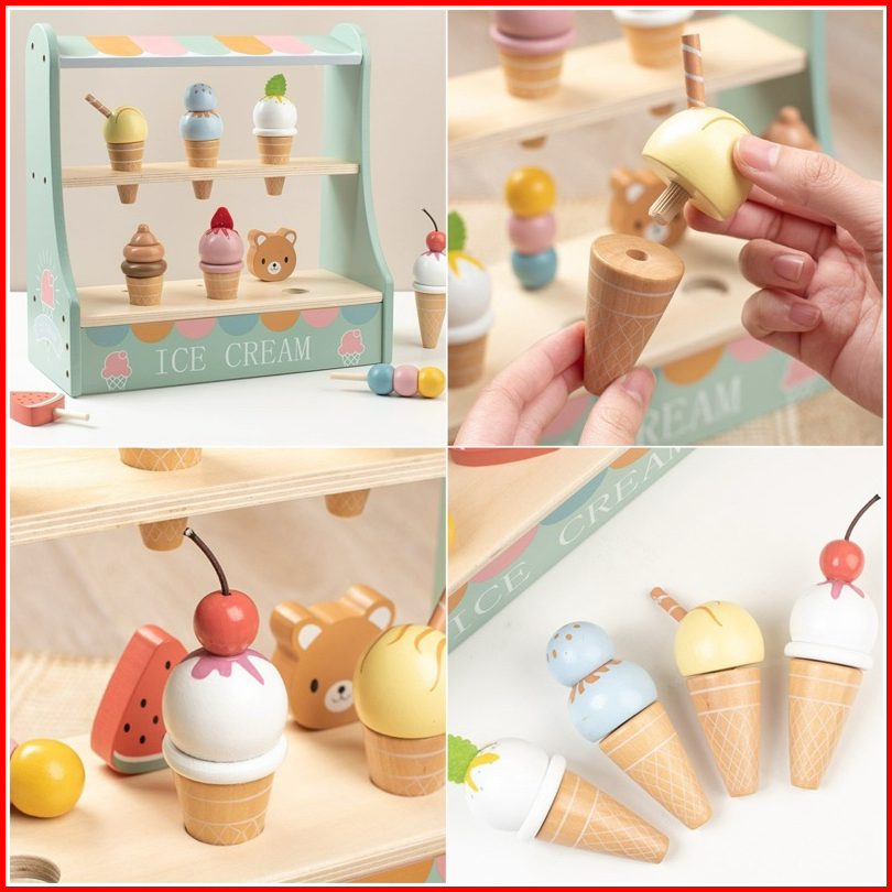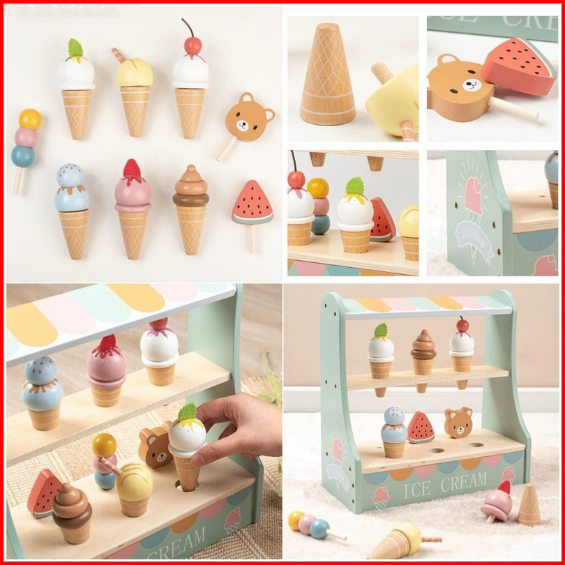 Wooden Ice Cream Cake Party Dessert Toys Mainan Kue Es Krim Pretend Plays