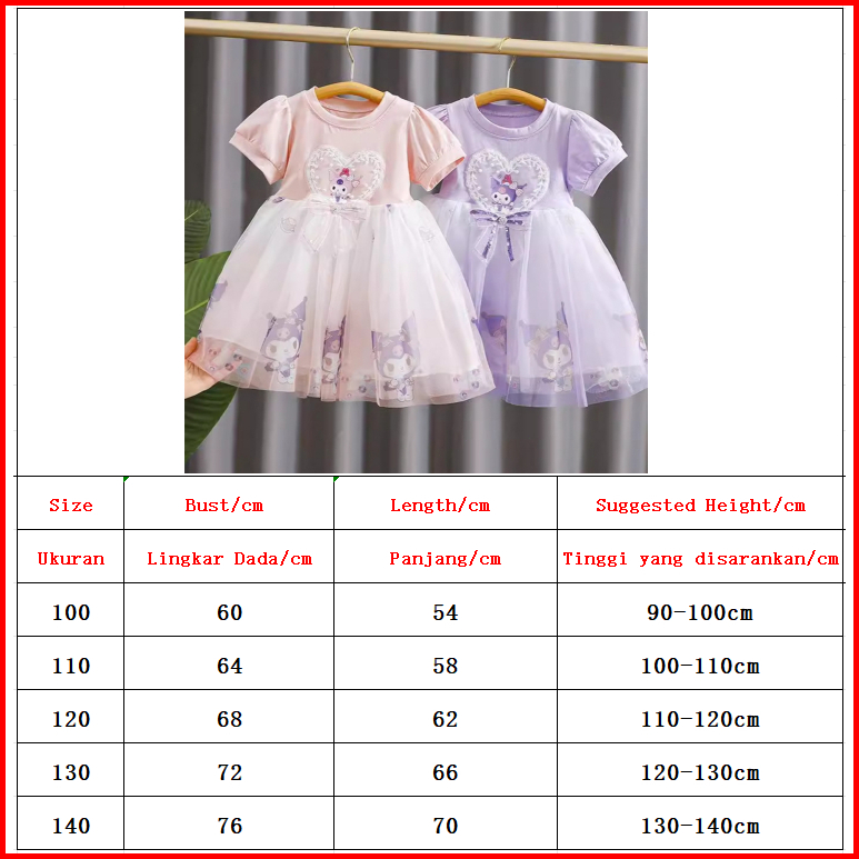 2-9 Tahun Gaun Putri Kuromi Kartun Anime Lucu Untuk Anak Perempuan Gaun Anak Katun Baru