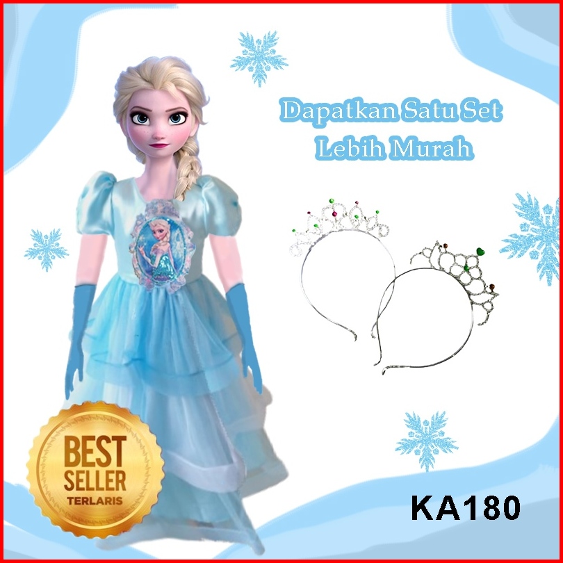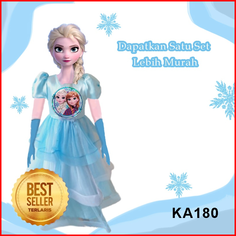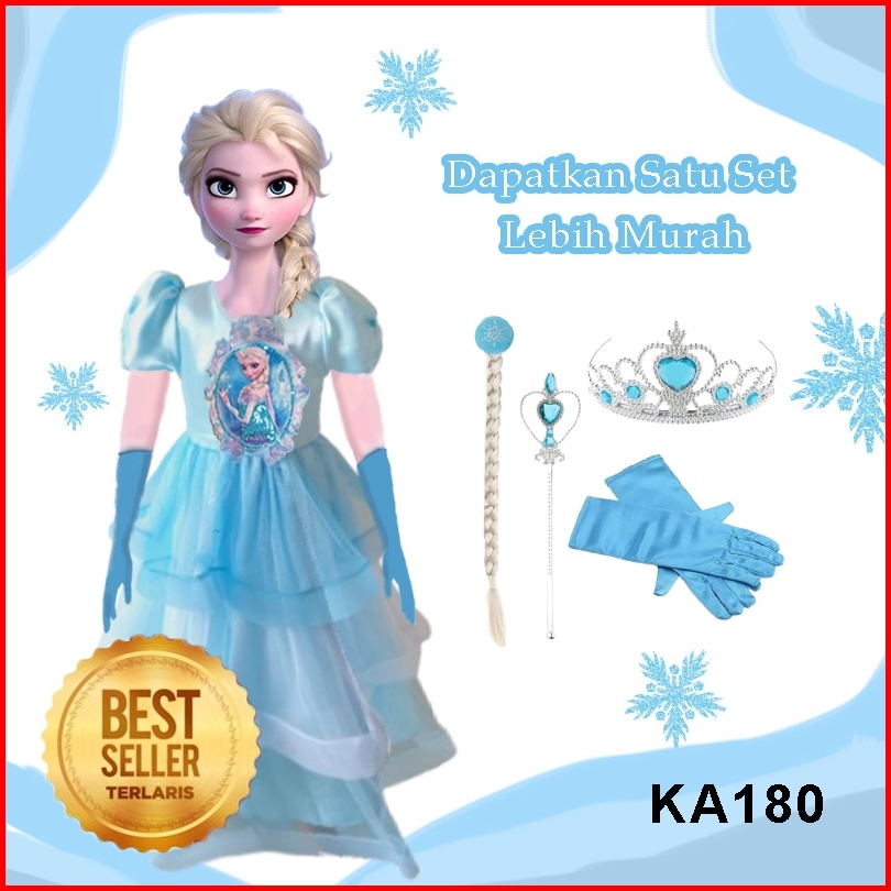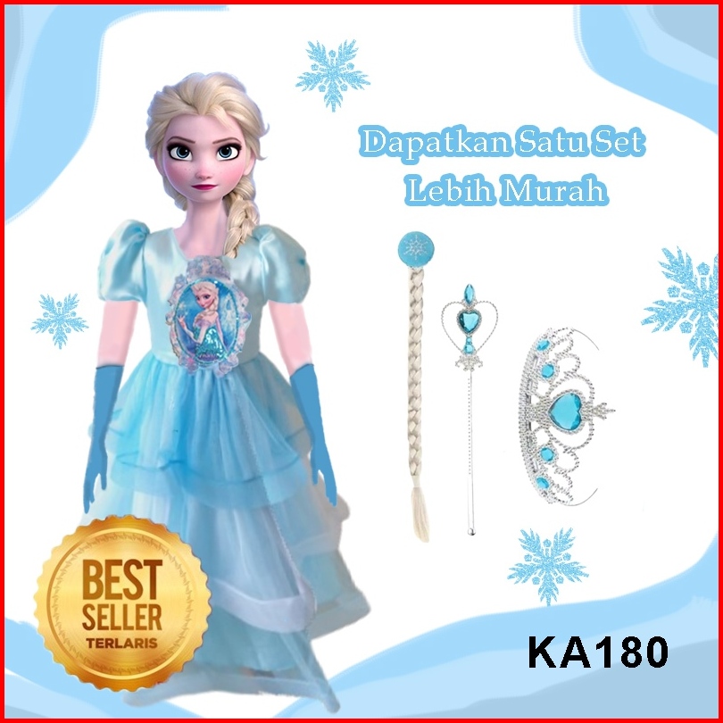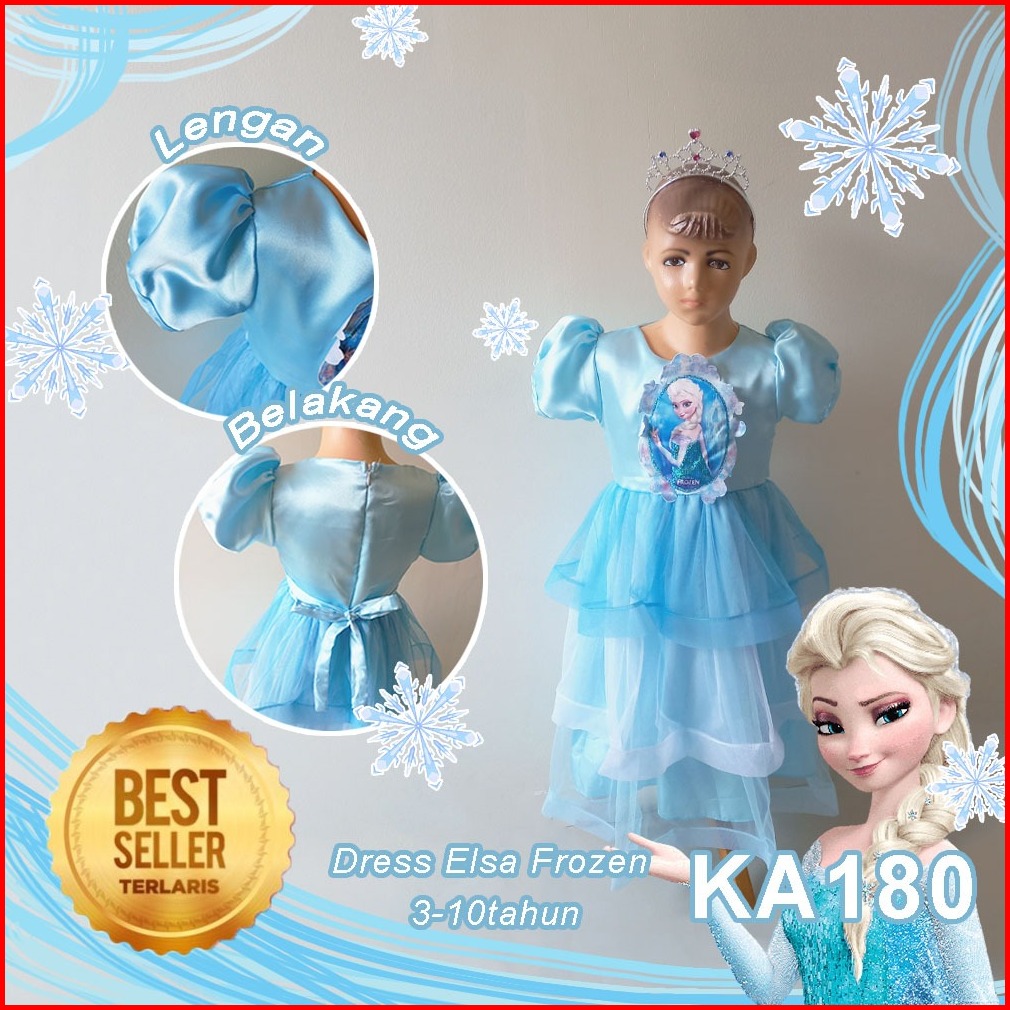 Dress Elsa Frozen Anak Import 3 4 Tahun Gaun Anak Frozen Ulang Tahun Blue Dress Party Elsa Anna Karakter Lengan Balon Dr