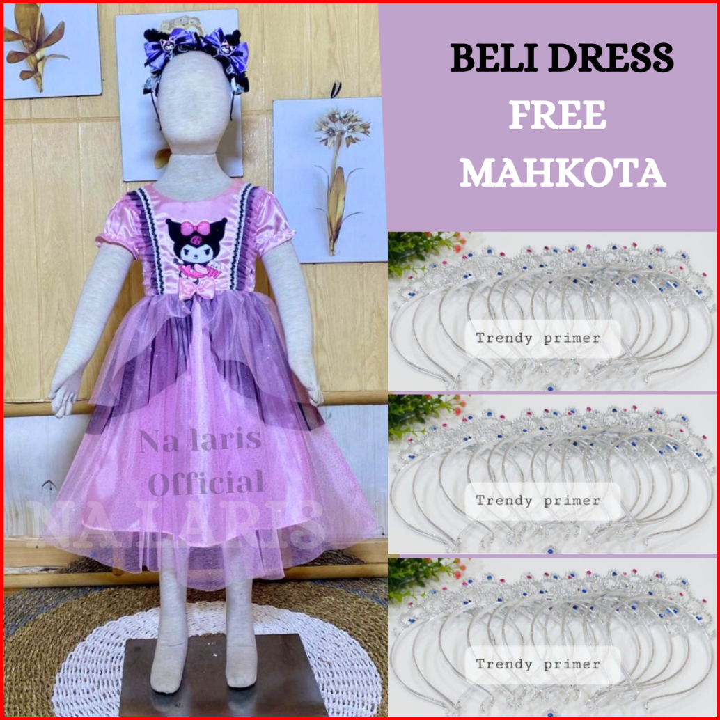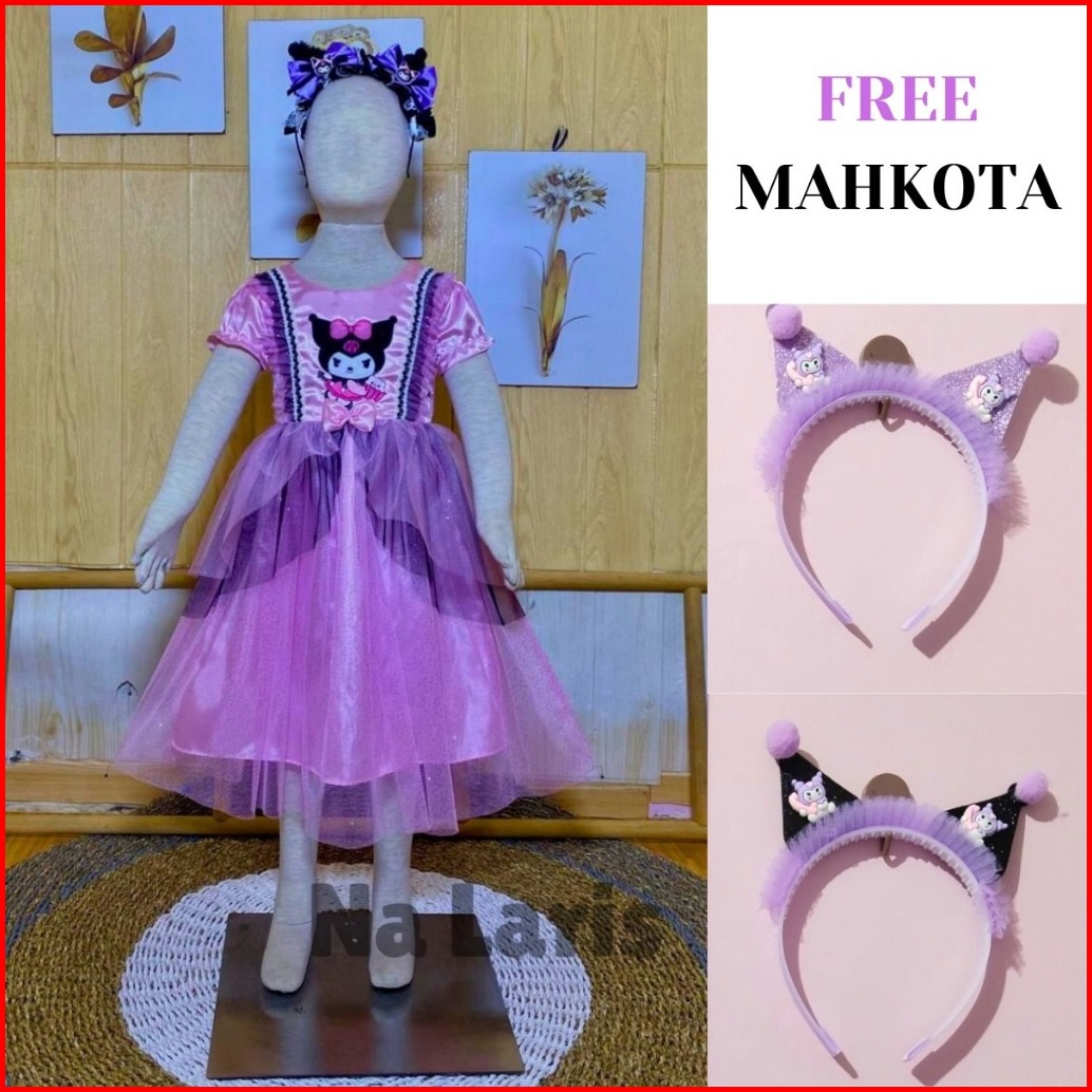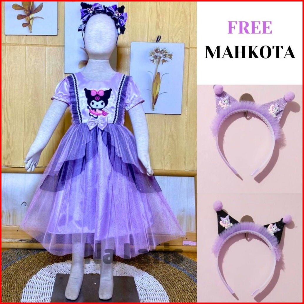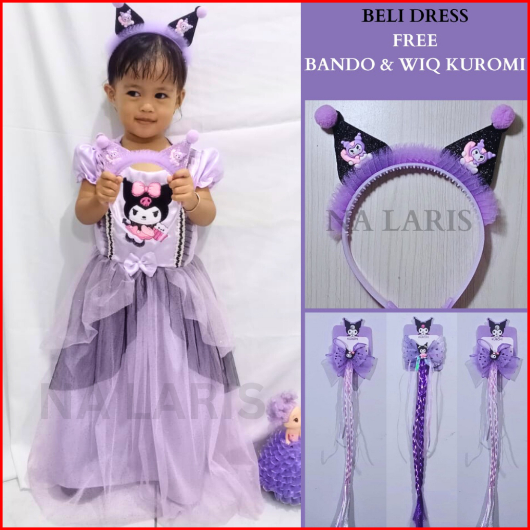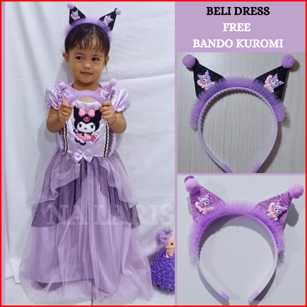 Gratis Bando Kuromi Dress Ultah Kuromi Anak Perempuan Import Usia 3 - 10 Tahun Gaun Kuromi Anak Perempuan Terbaru 2024 G