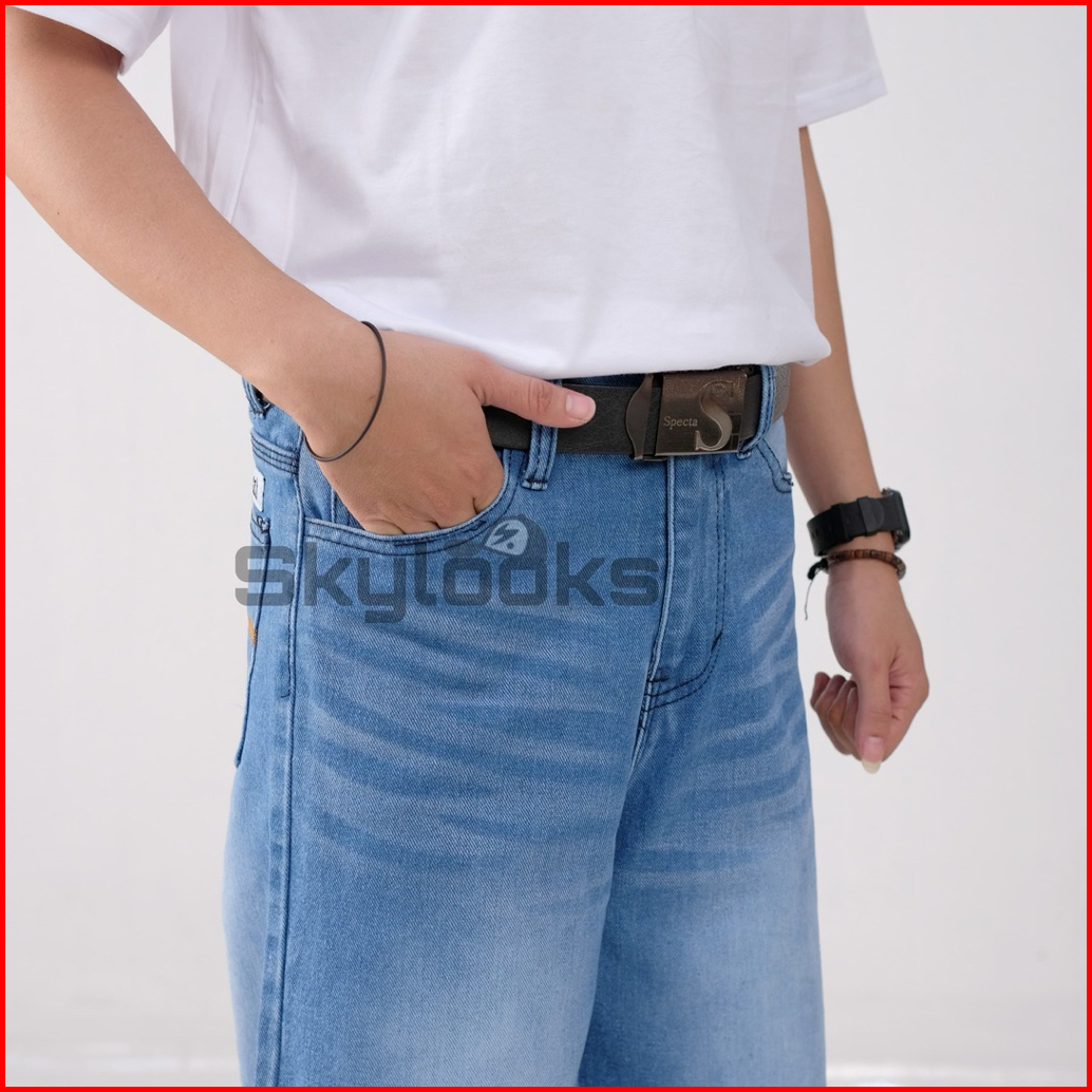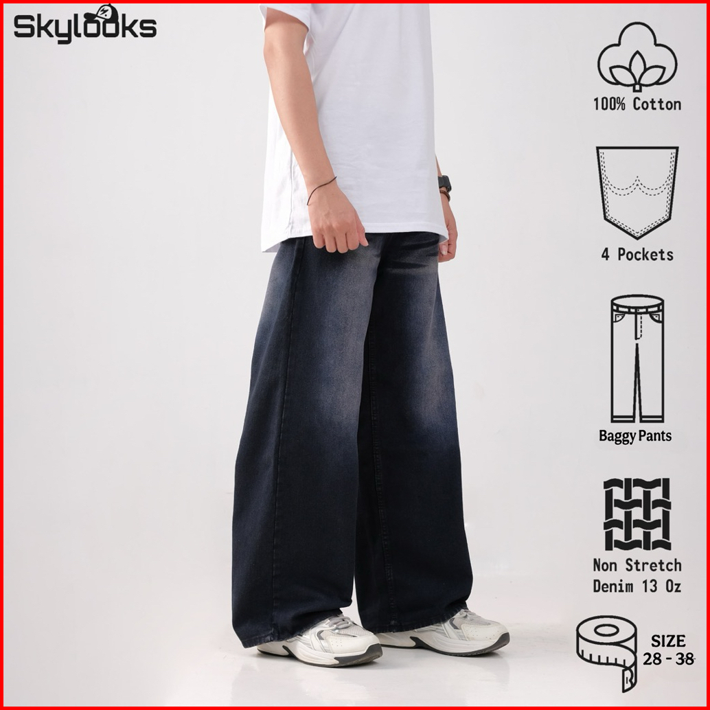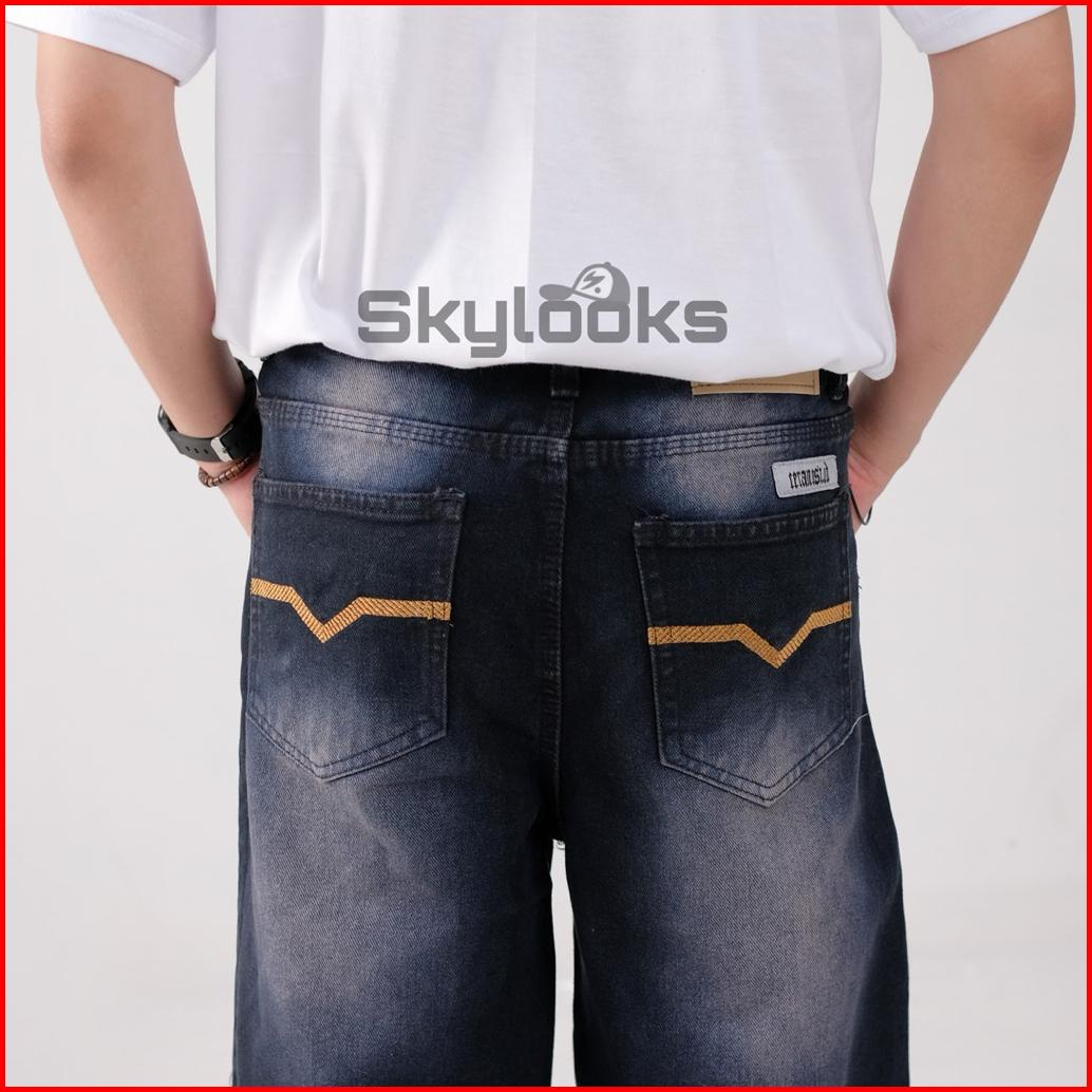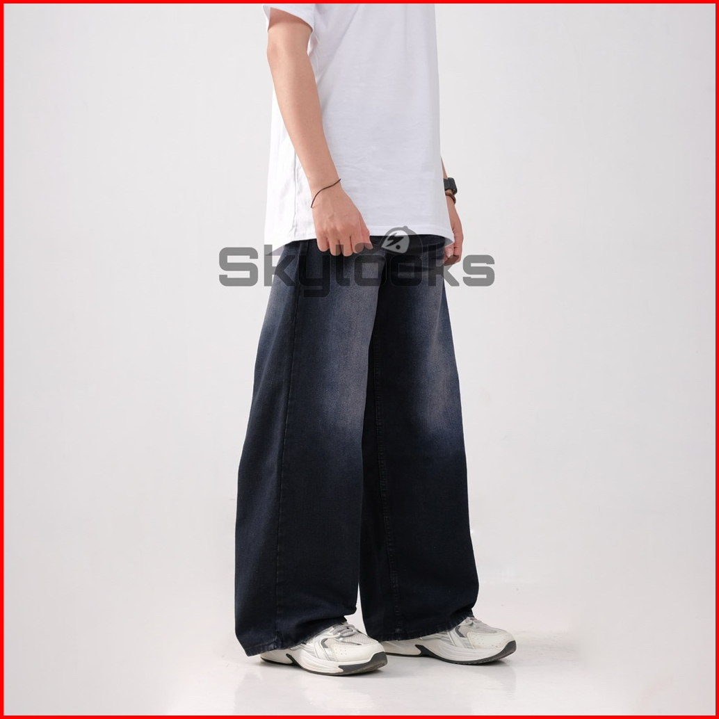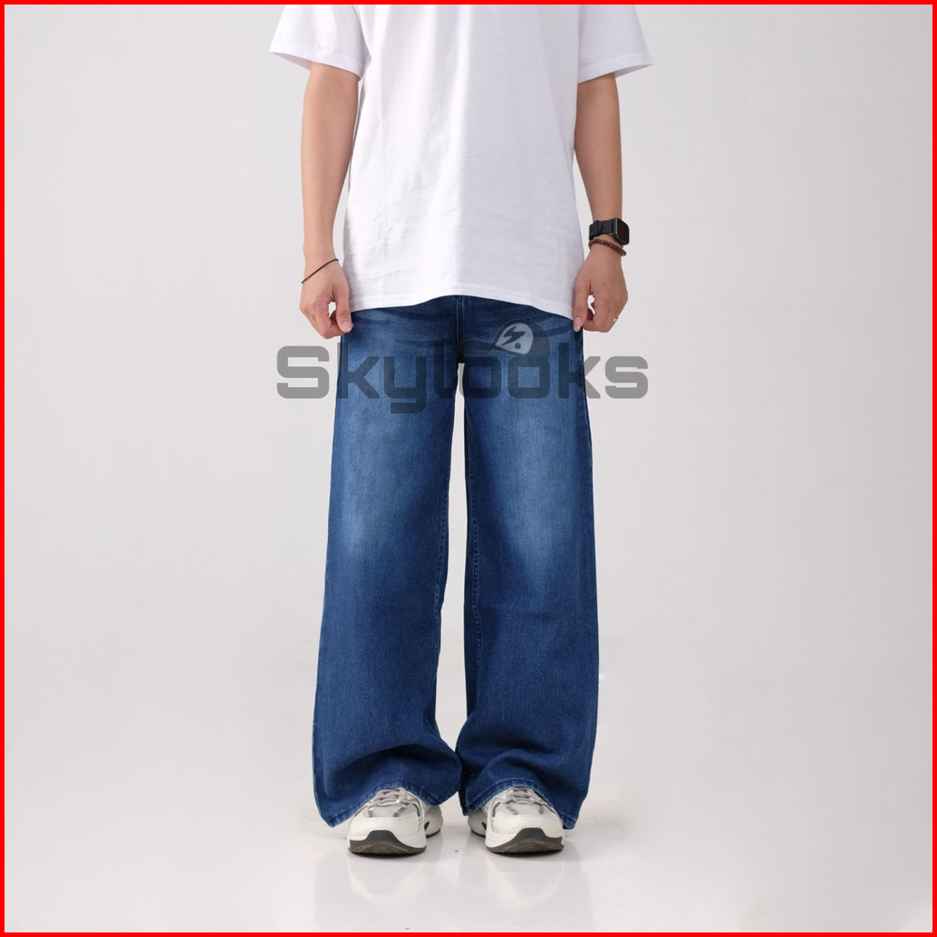 Skylooks.id-unisex Celana Jeans Panjang Lebar Bawah Korean Style Baggy Reguler Washed Fitt Pria Dan Wanita Gombrong Sken