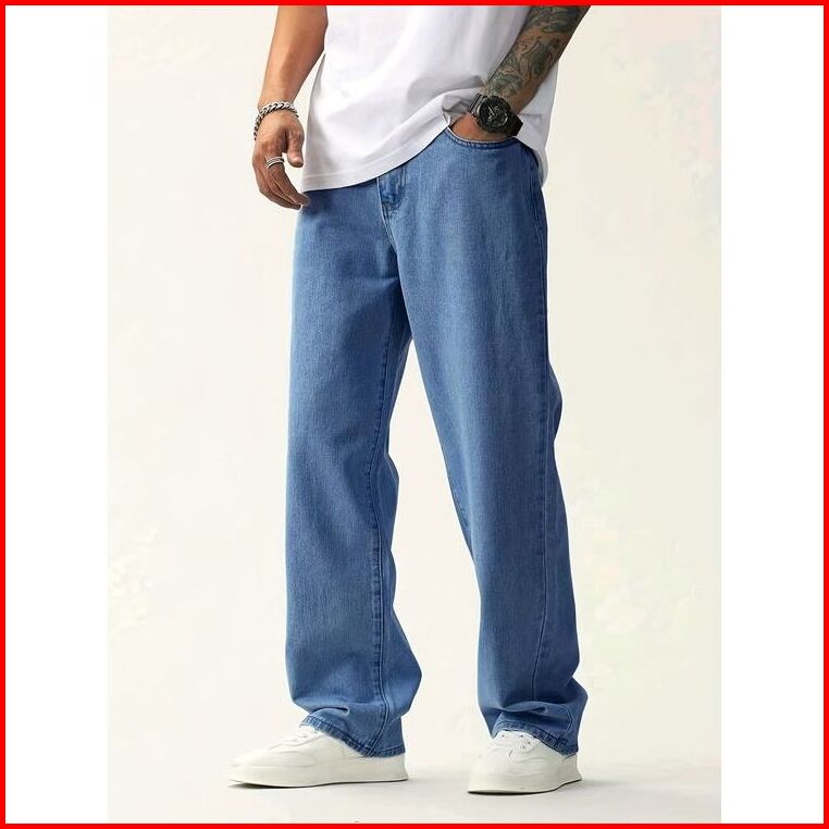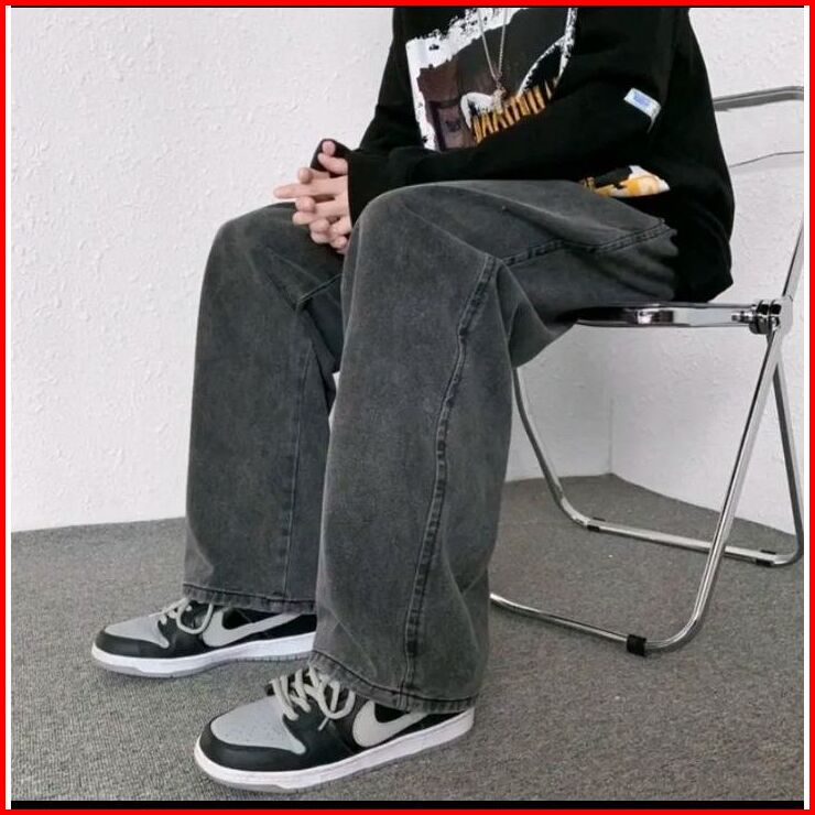 Celana Jeans Pria Panjang Straight Pants Reguler Fit Korea Style Baggy Jeans