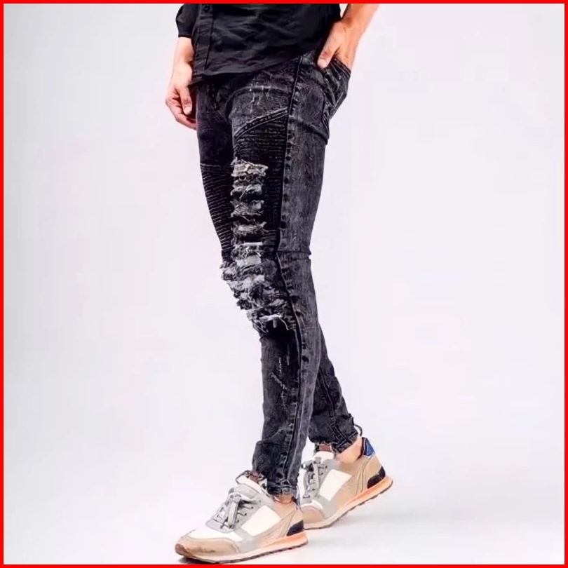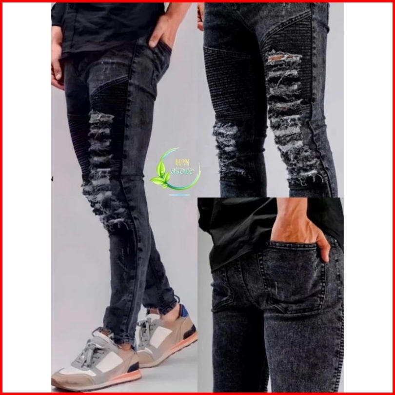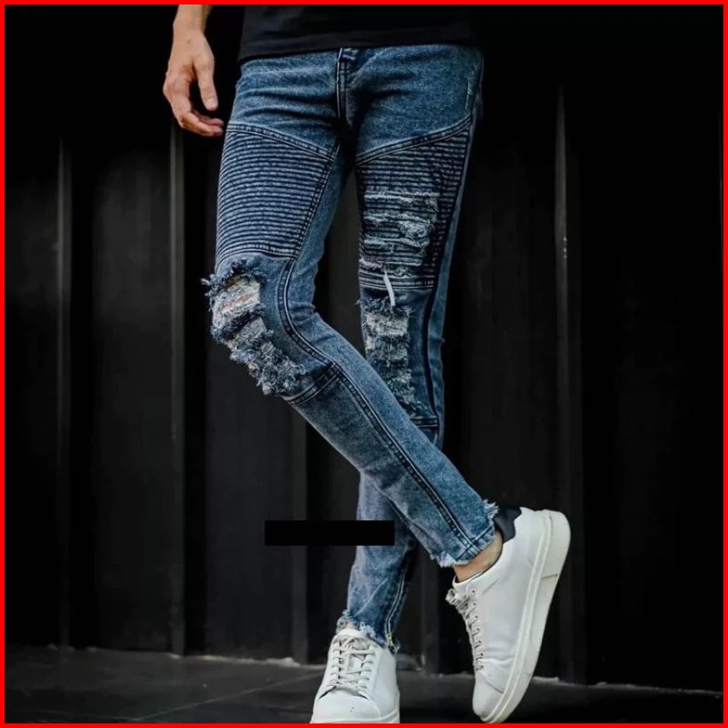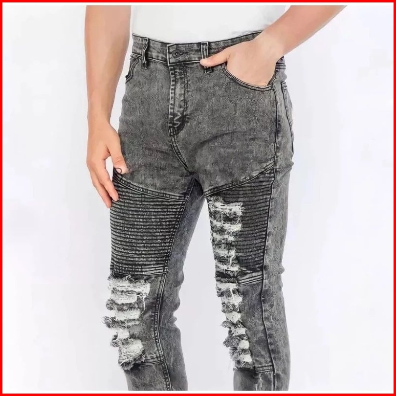 Celana Jeans Pria Sobek Biker Ripped - Celana Panjang Jeans Pria Sobek Lutut
