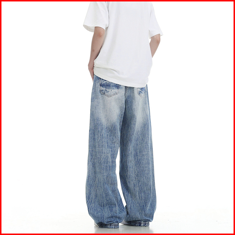 Celana Jeans Pria Biru Premium Denim Fashion Baggy Pants Korean Style Panjang Casual Gombrong Jens