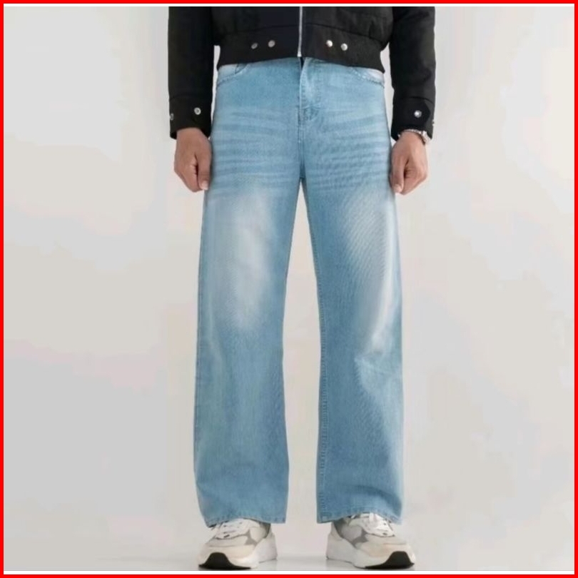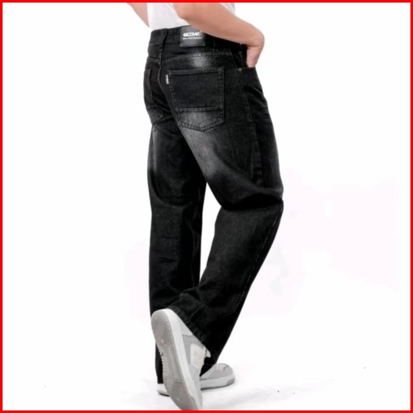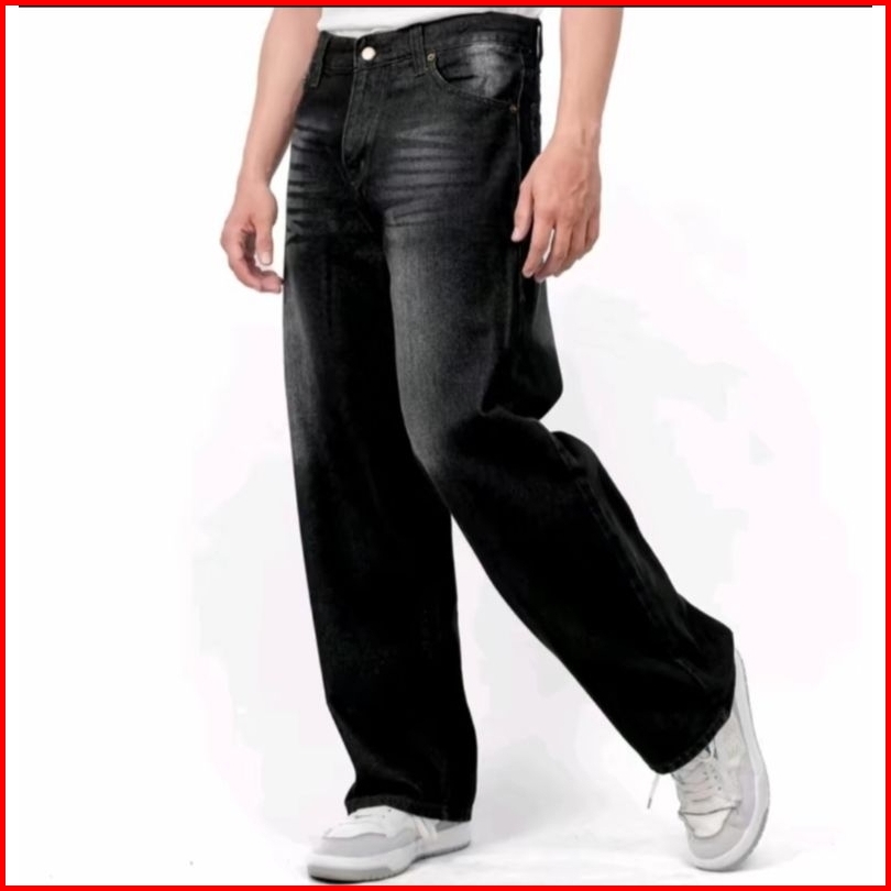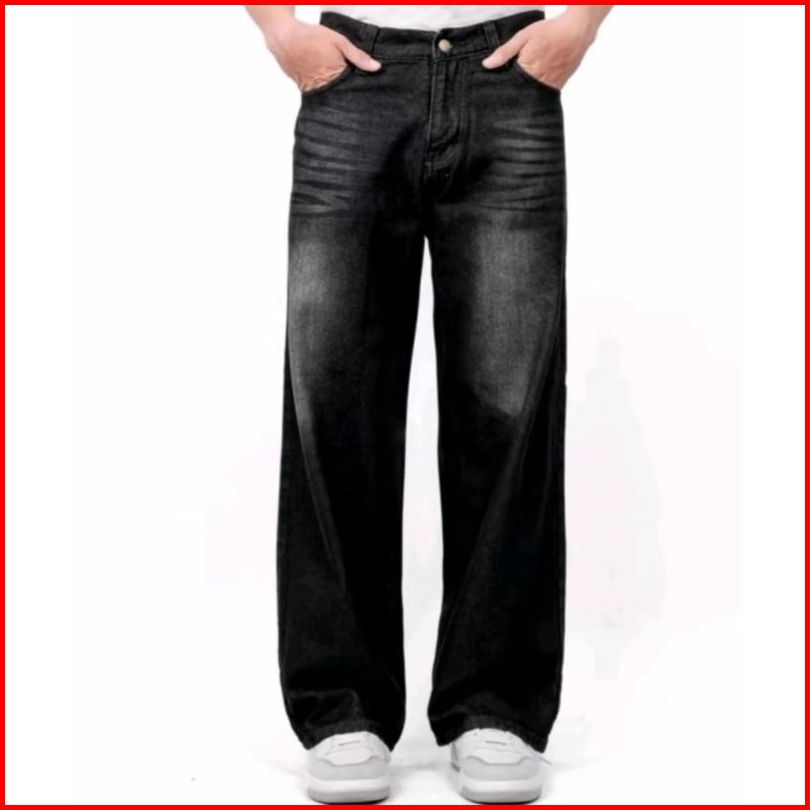 Baggy Jeans Pria Gombrang Skena Black Wisker Celana Panjang Losefit Jumbo Denim Hitam Loose Nyaman