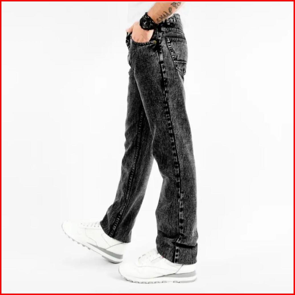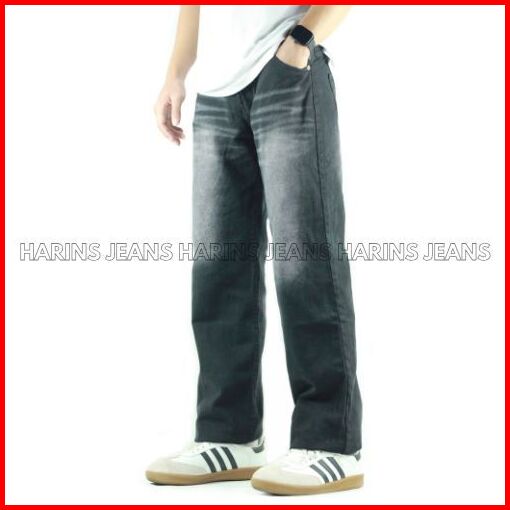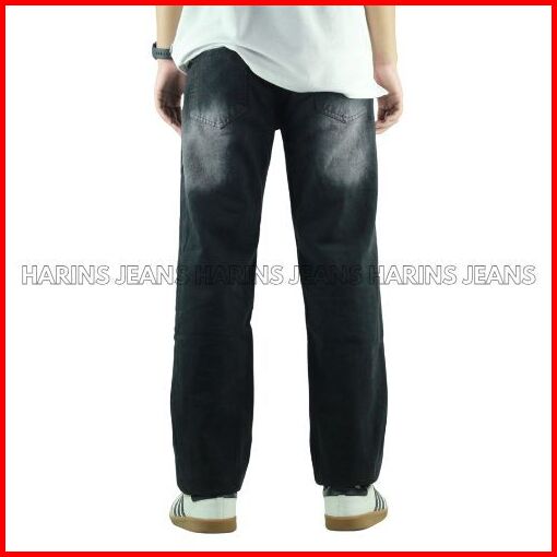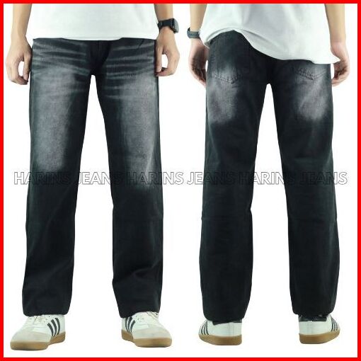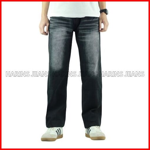 Celana Panjang Jeans Hitam Whisker Spray Pria Model Standar Reguler Basic Denim - Harins Jeans