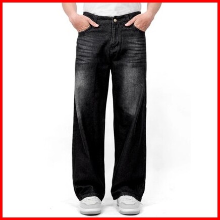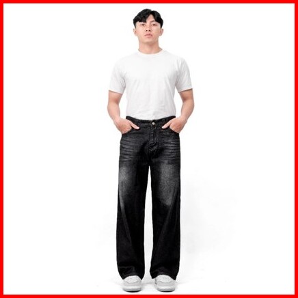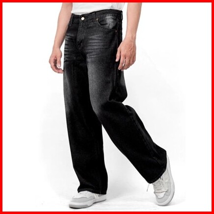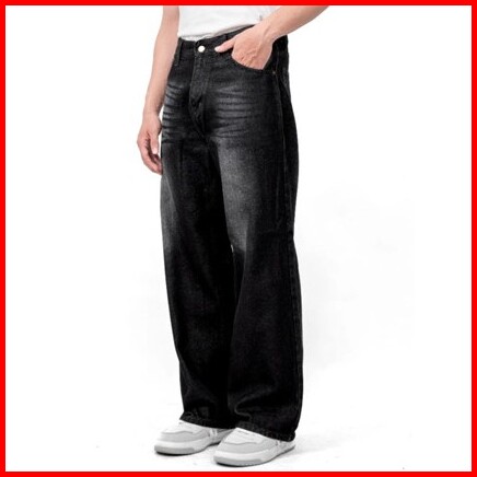 Celana Jeans Pria Black Wisker Loose Fit Reguler Gombrong Standard Denim Washed Wide Leg Skena