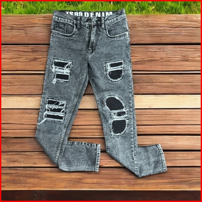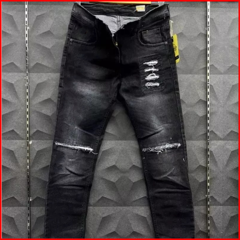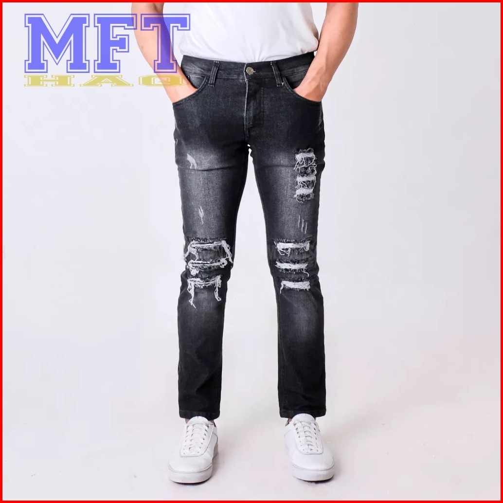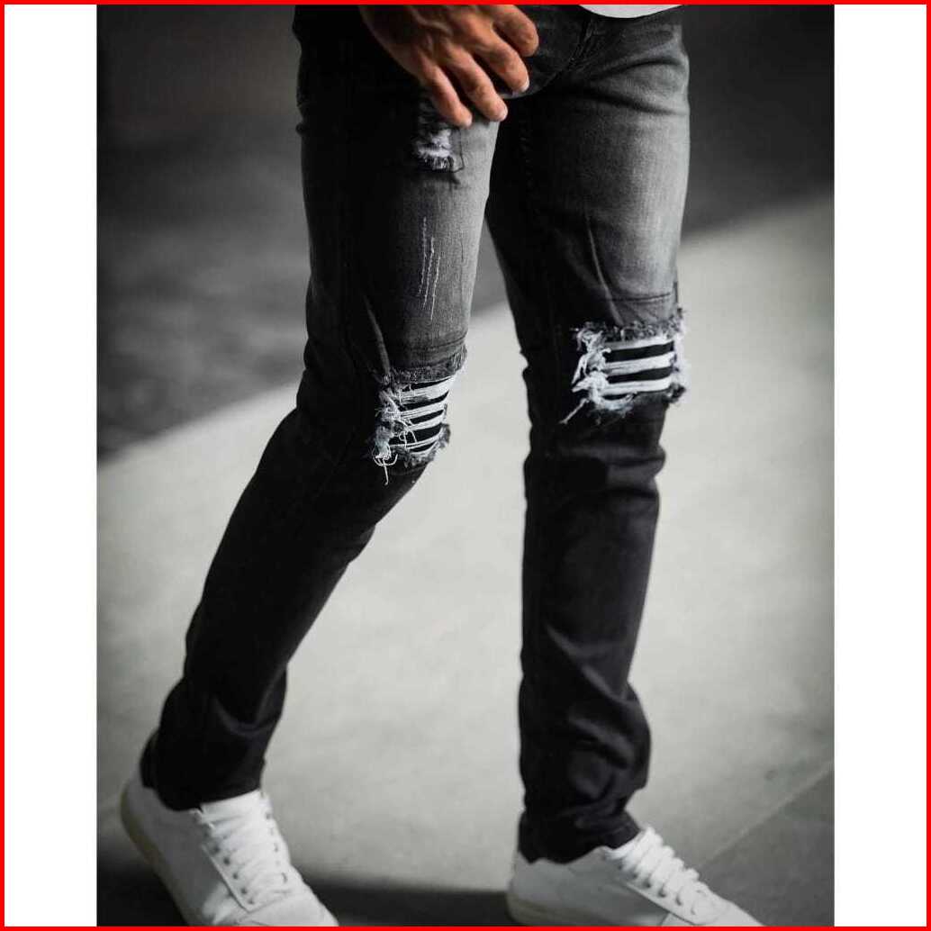 Celana Jeans Pria Sobek Lutut Robek Ripped Hitam Premium