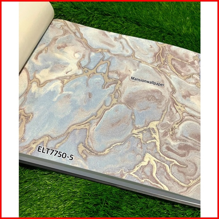 Wallpaper Motif Marmer Granit Abstrak Multiwarna Cream Biru Ungu