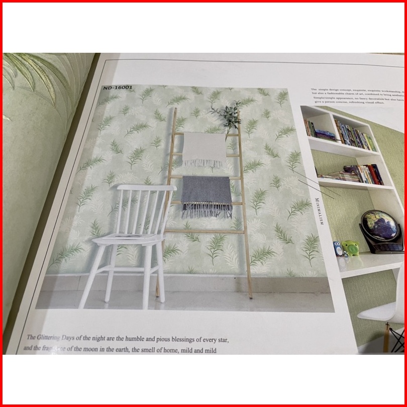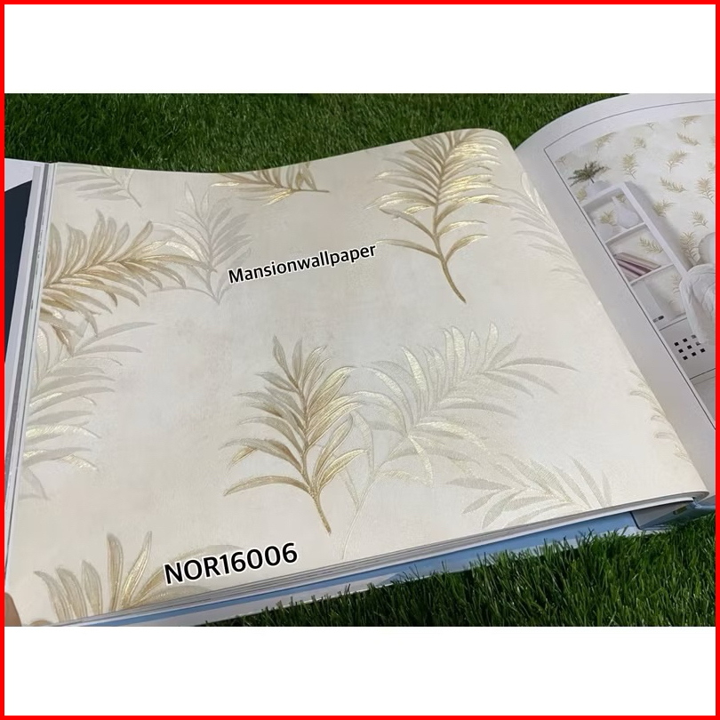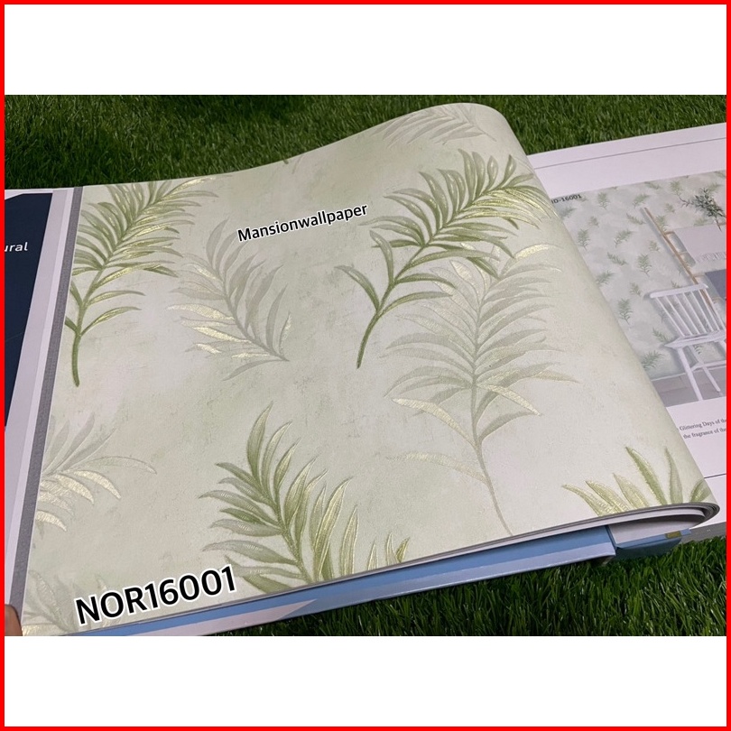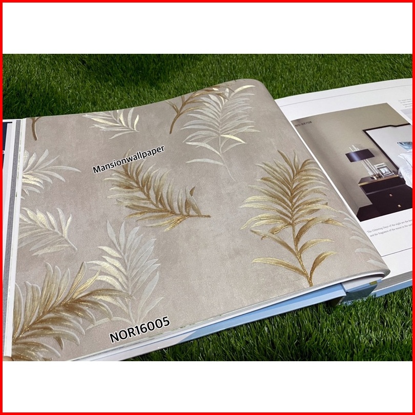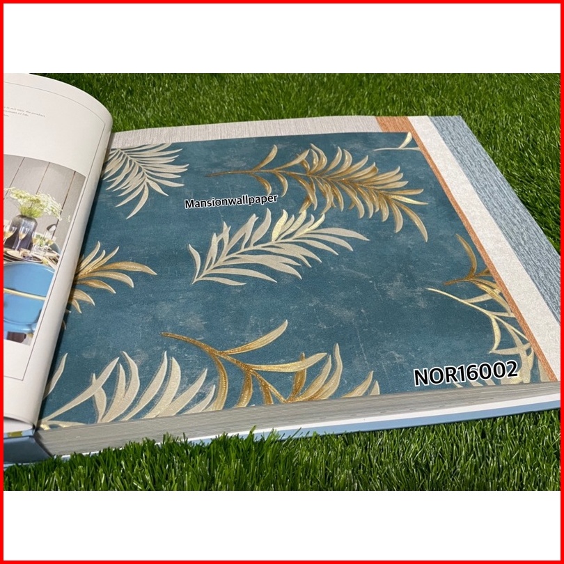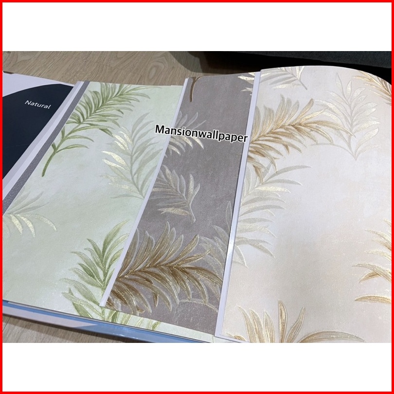 Wallpaper Dinding Motif Daun Simple Hijau Tosca Abu Coklat Elegan Mewah