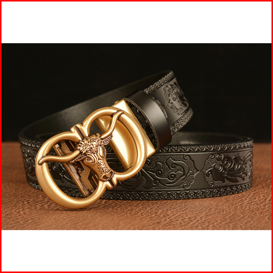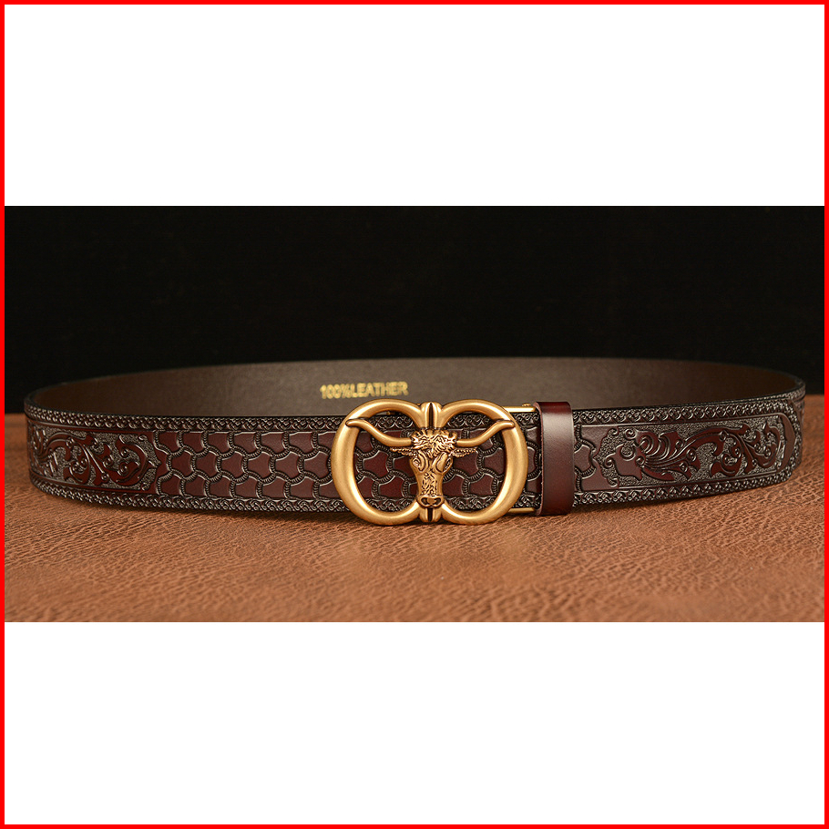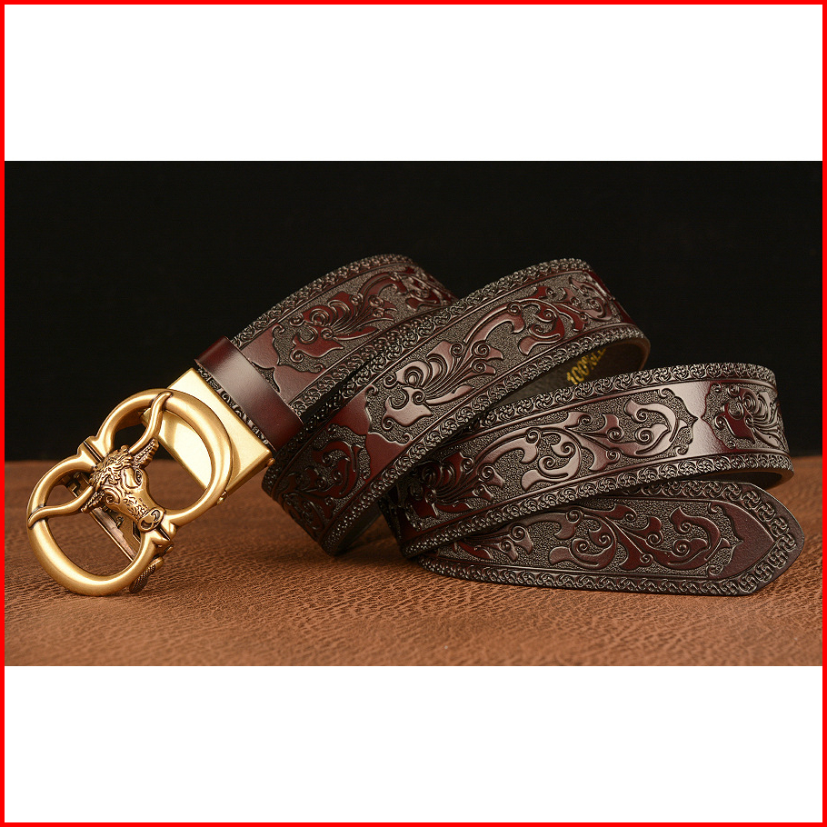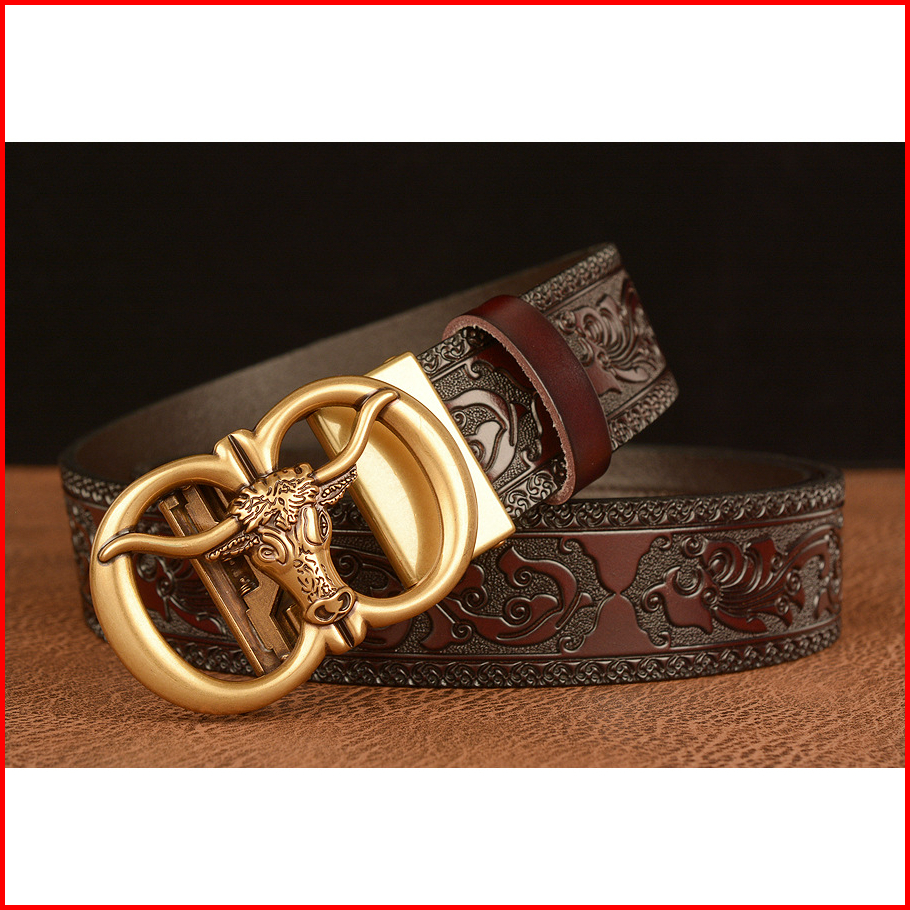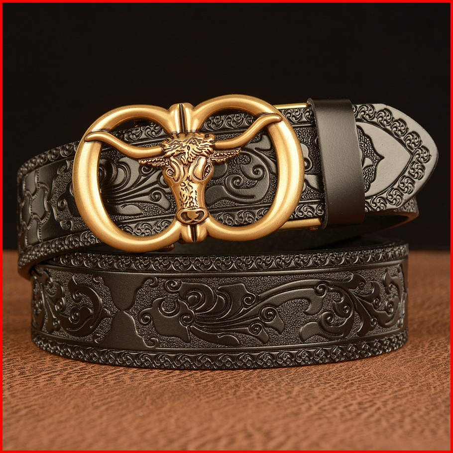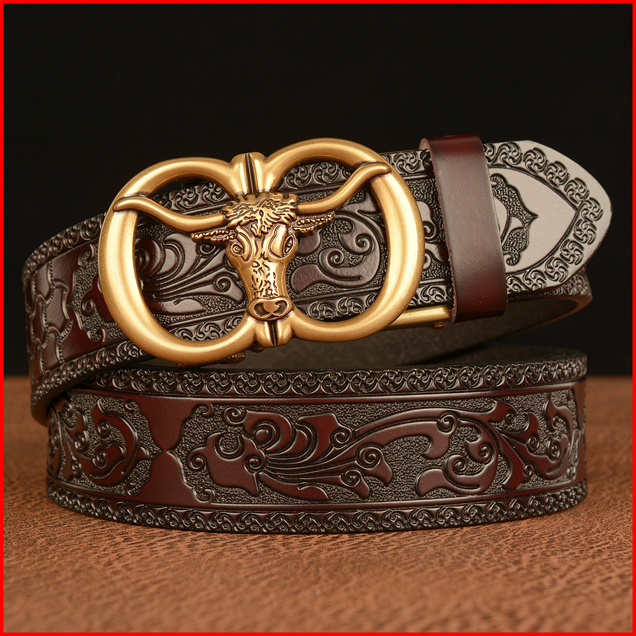 Sabuk Ikat Pinggang Gesper Pria Ukir Kulit Sapi Asli Model Banteng