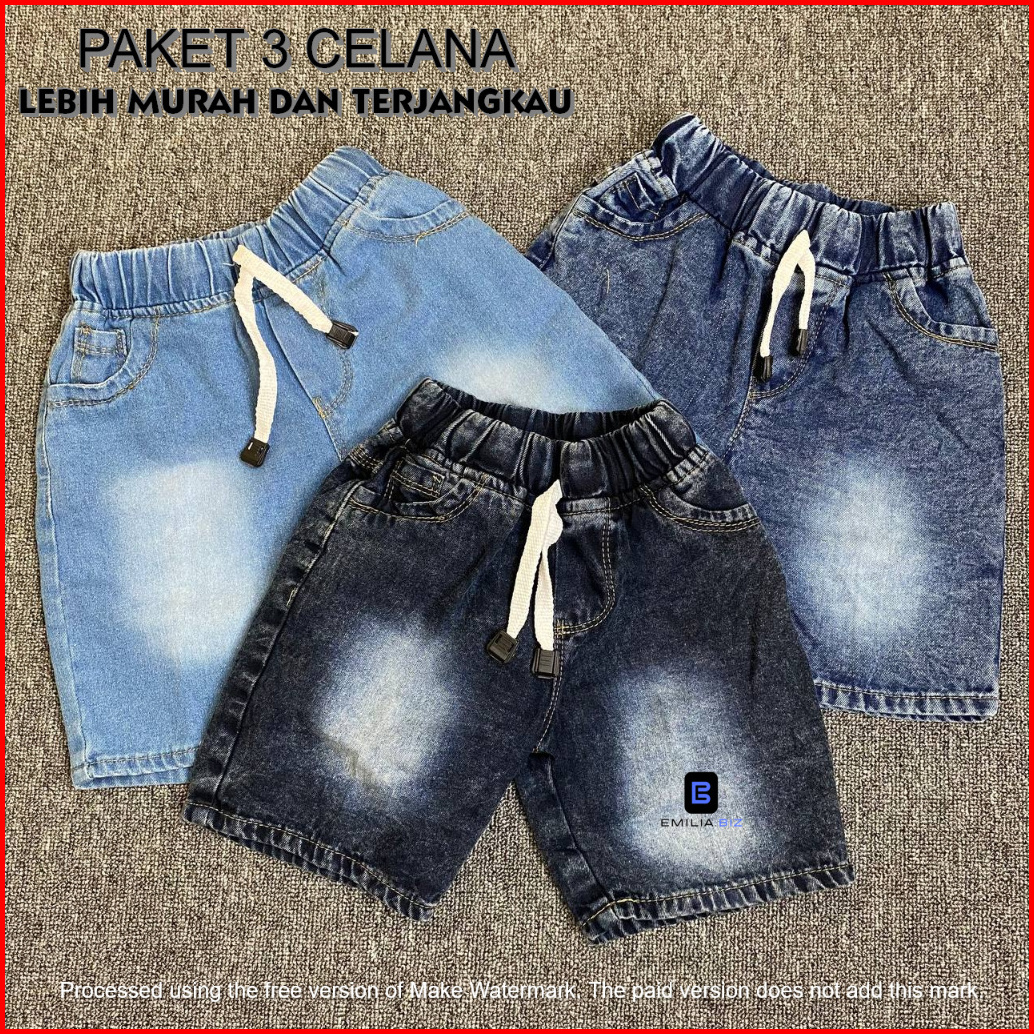 Paket 3 Pcs Celana Jeans Pendek Anak Laki-laki Usia 2 - 12 Tahun Ikat Pinggang Karet
