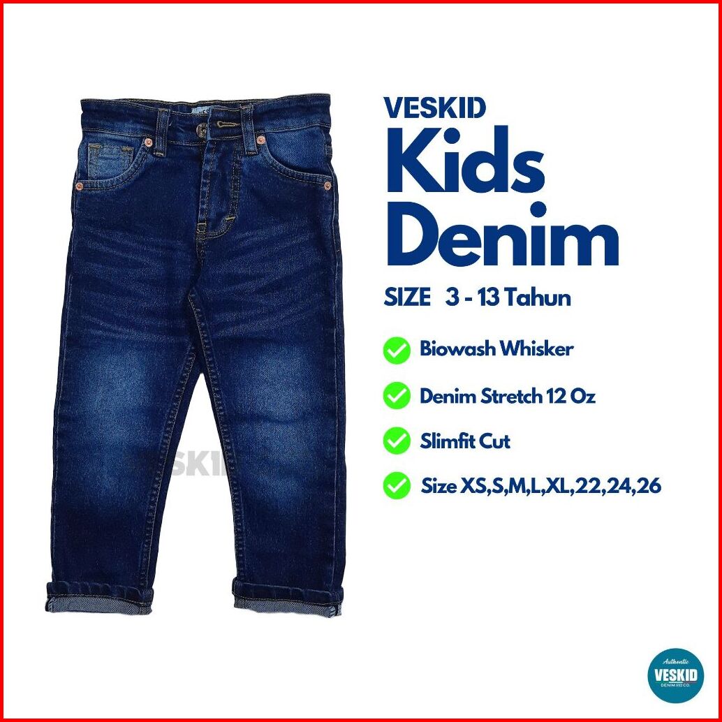 Celana Jeans Panjang Anak Laki-laki Stretch Slimfit 2-13 Tahun Jeans Anak Biowash - Veskid Denim