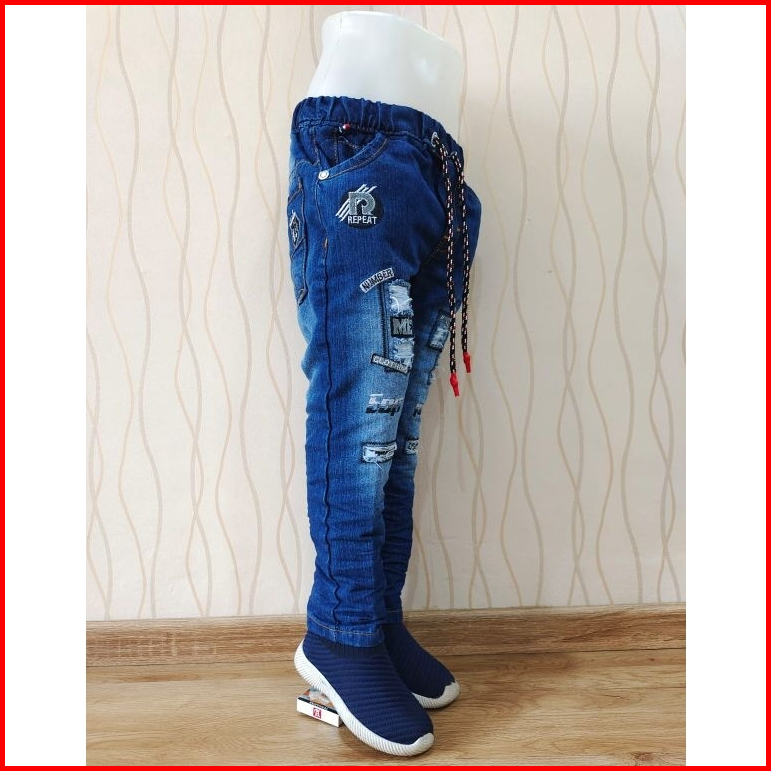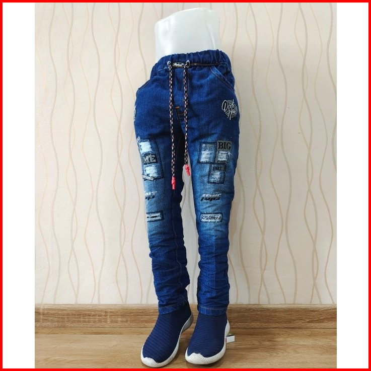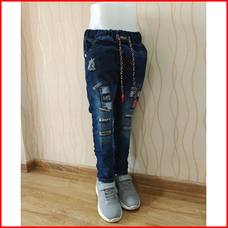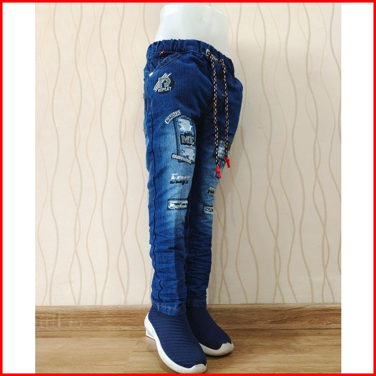 Celana Panjang Jeans Anak Laki-laki Usia 4 - 12 Tahun Bahan Jeans Jins Model Bordir Sobek Robek Gaul Tidak Tembus Keren