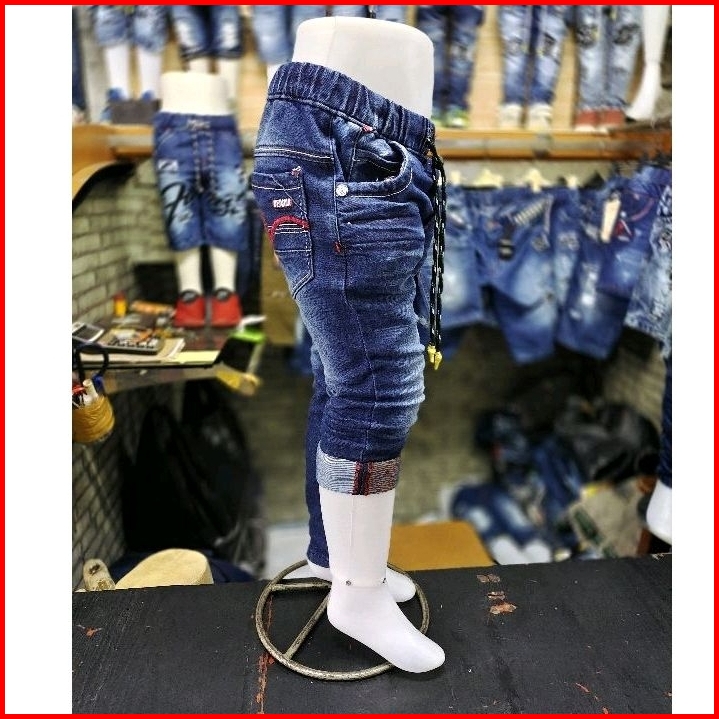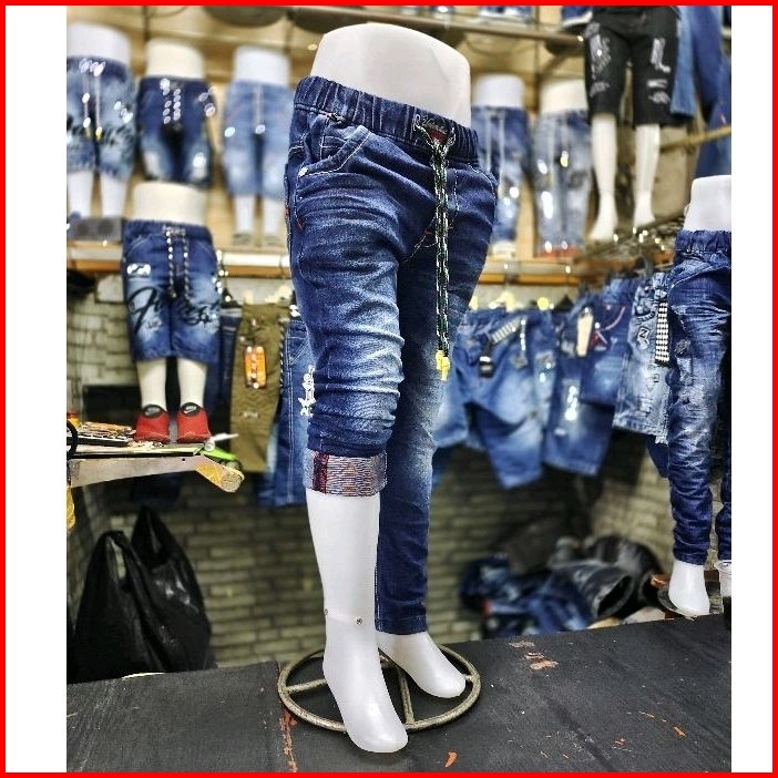 Celana Panjang Anak Laki Usia 4 - 12 Tahun Keren Bahan Jeans Jins Lepis Strech Street Strit Melar Model Sablon Lipat Ker