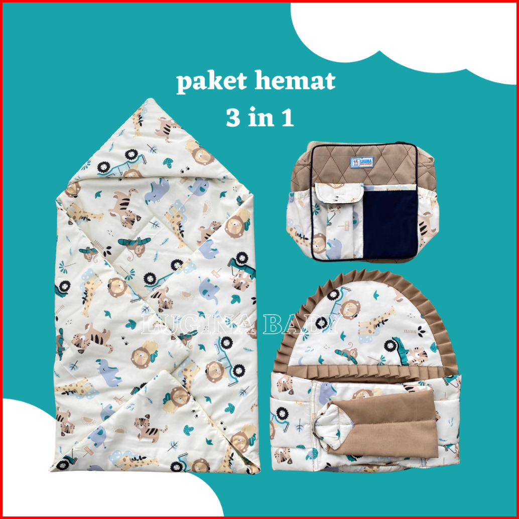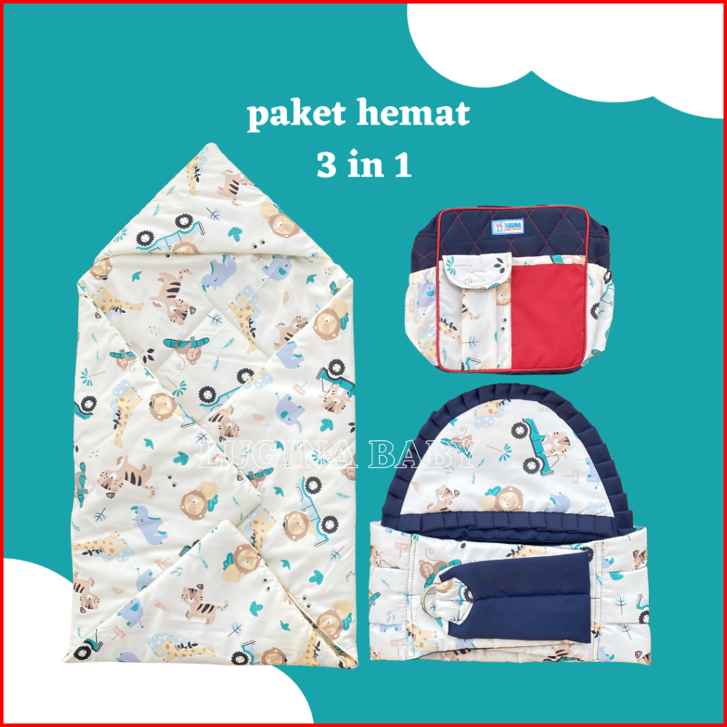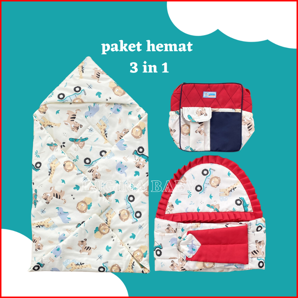 Set Perlengkapan Bayi 3 In 1 Tas Bayi Kecil Gendongan Samping Dan Selimut Bayi