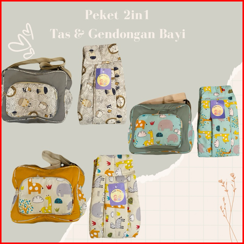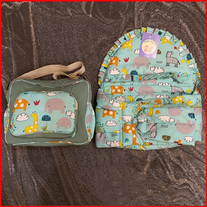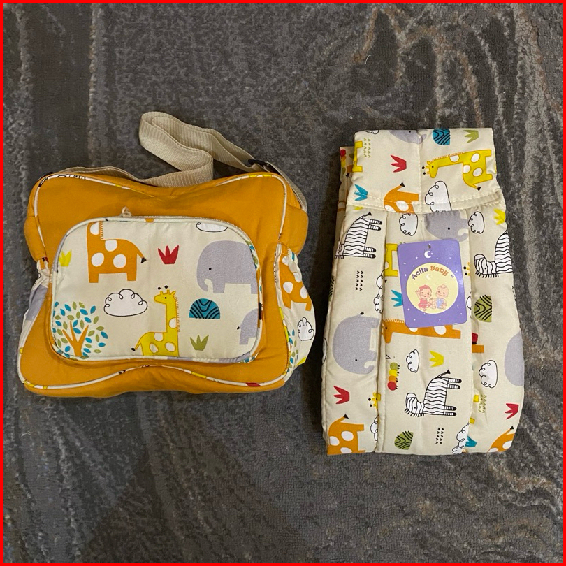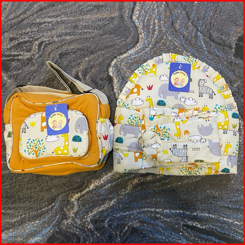 Acila Baby - Paket Set Hemat 2in1 Gendongan Samping Dan Tas Perlengkapan Bayi M Baby Gift Free Tas Mika