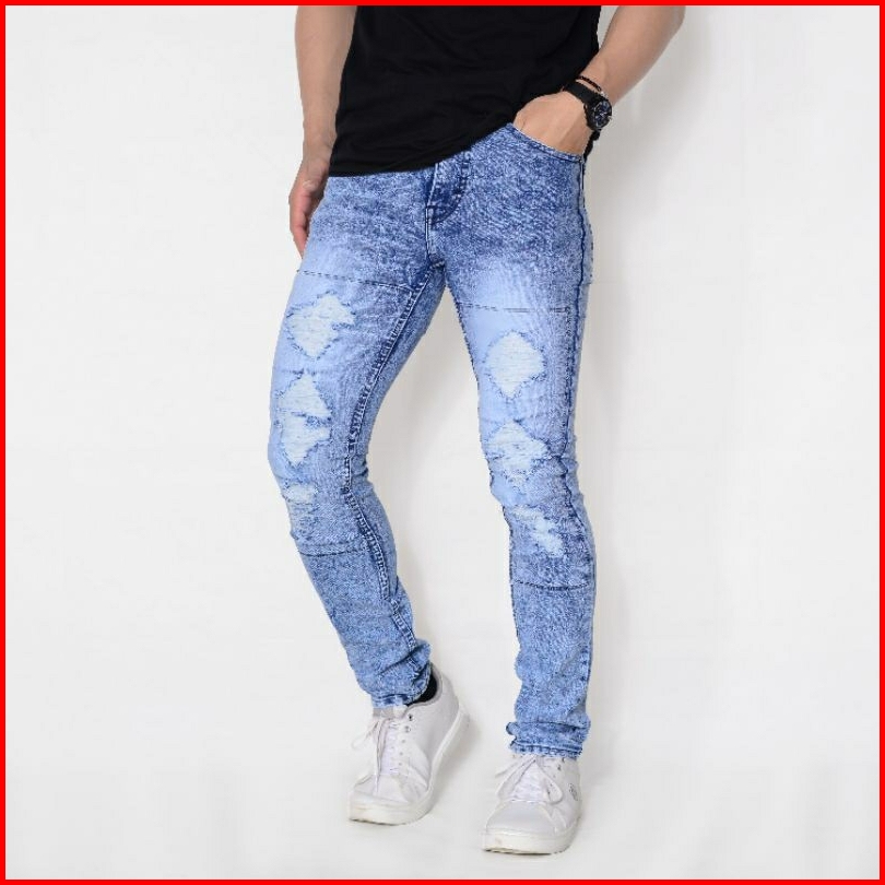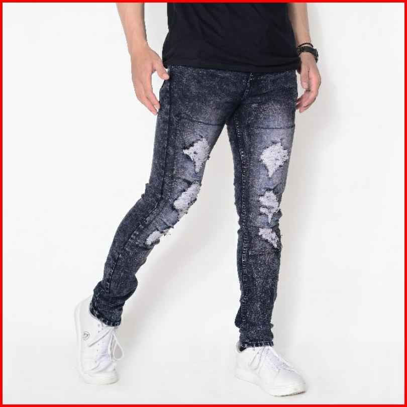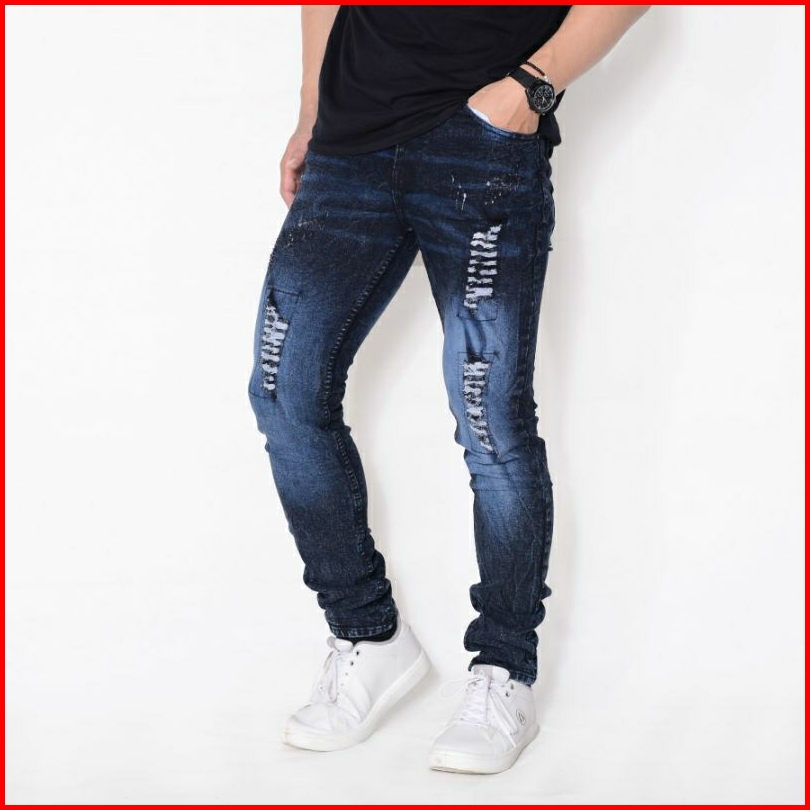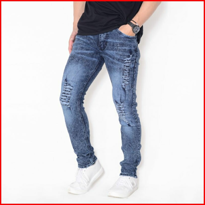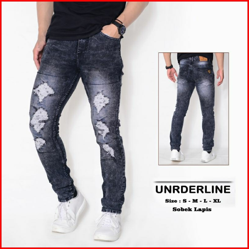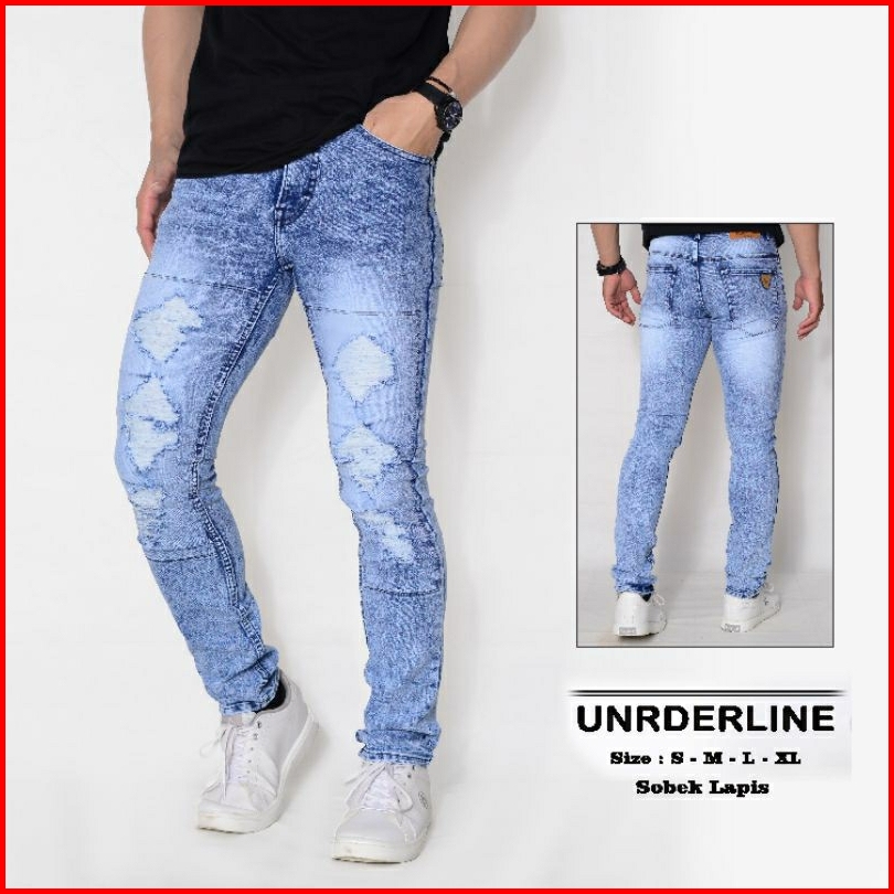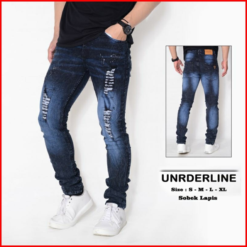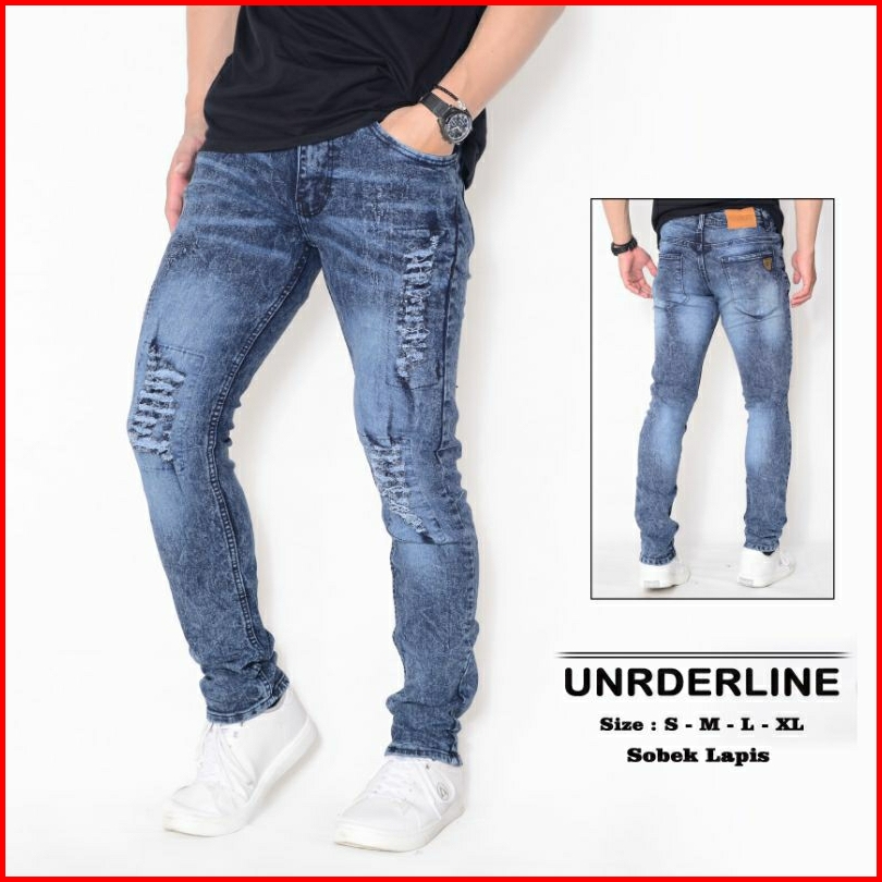 Underline Celana Jeans Panjang Pria Robek Tidak Tembus Ripped Jeans Skinny Snow