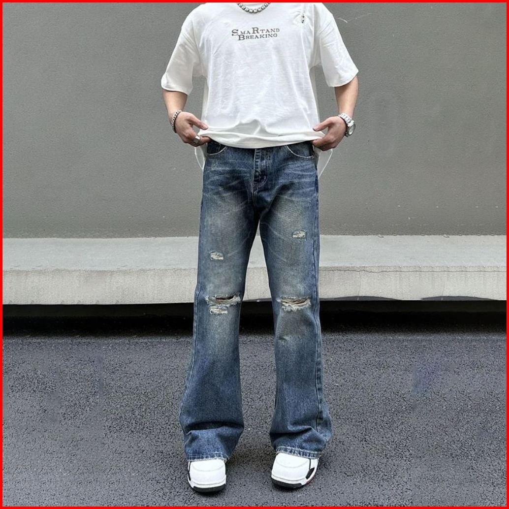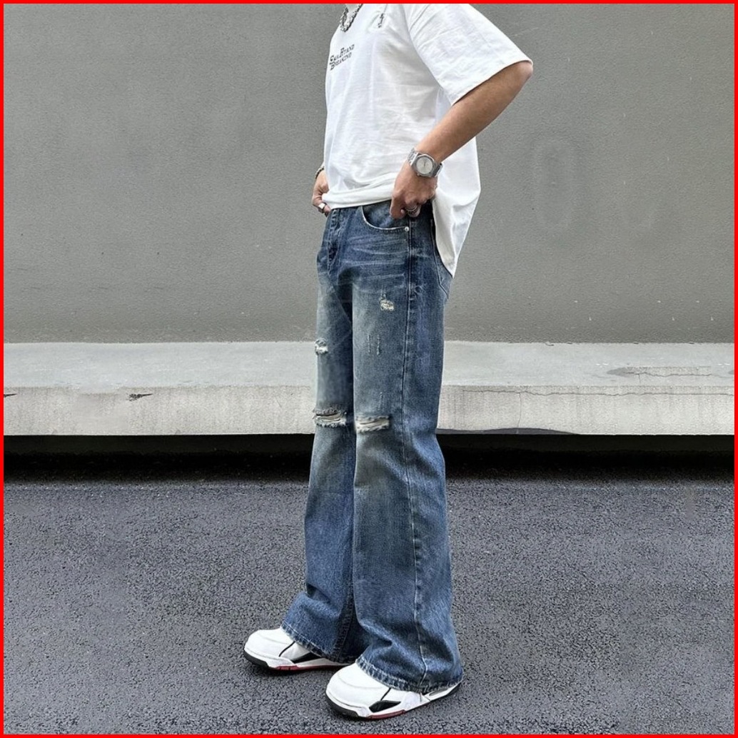 Celana Jeans Pria Panjang Baggy Sobek Pants Straight Celana Denim Dewasa Kulot Loose Fit Jumbo Cowok Korean Style Longga