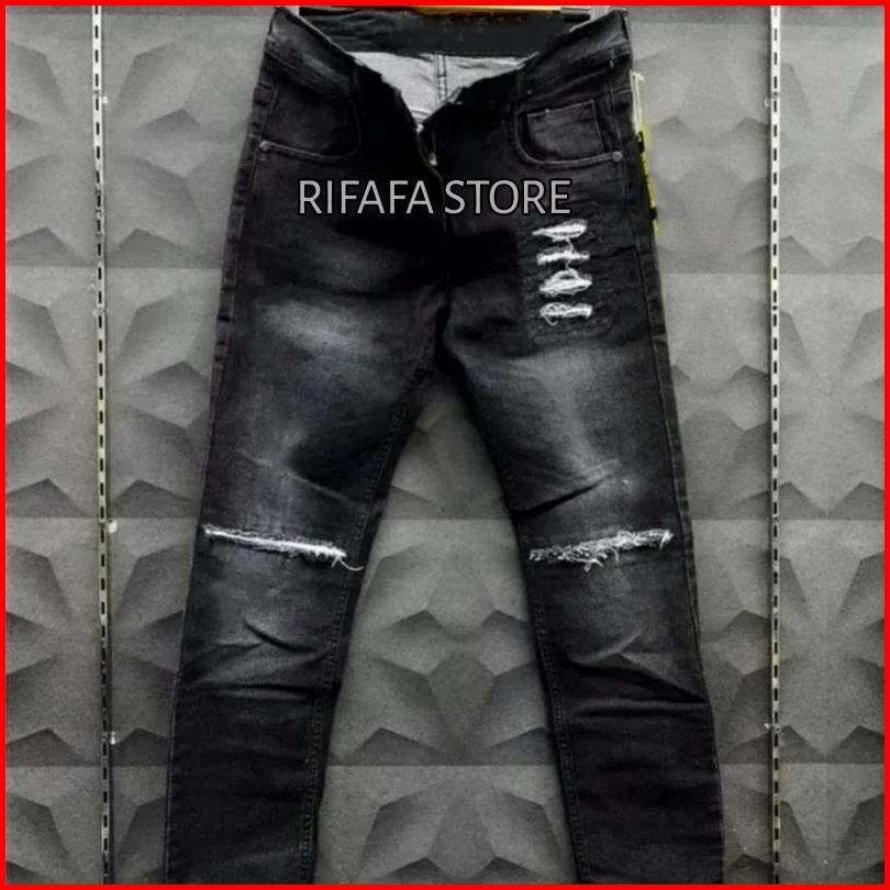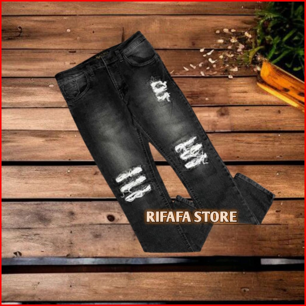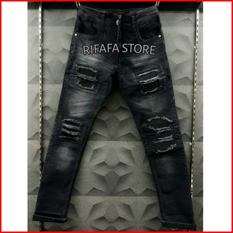 Celana Jeans Sobek Pria Bikers New Arrival Black Skin Premium Celana Sobek Rucas Ripped Slimfit Destroy